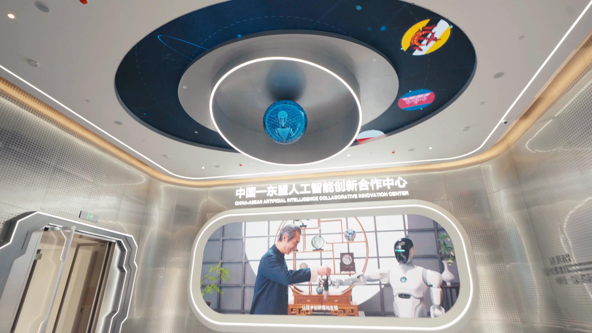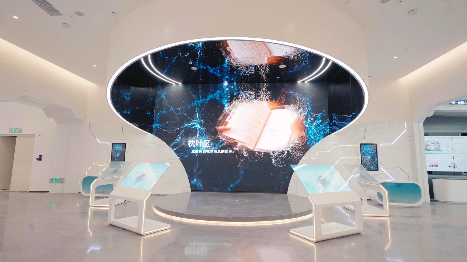 展示中心以“智汇东盟”为核心理念,将未来科技与东盟文化基因精妙融合,塑造出一座开放、流动、绿色且可持续发展的人工智能创新枢纽。内部采用AI导览系统,结合裸眼3D、全息投影等前沿技术,全景呈现中国与东盟人工智能合作成果;二层“智慧之树”服务大厅通过数字根系造型,象征区域合作枝繁叶茂;三层智能工厂全流程展示AI产业化路径,构建起集展示、服务、孵化于一体的综合性平台。