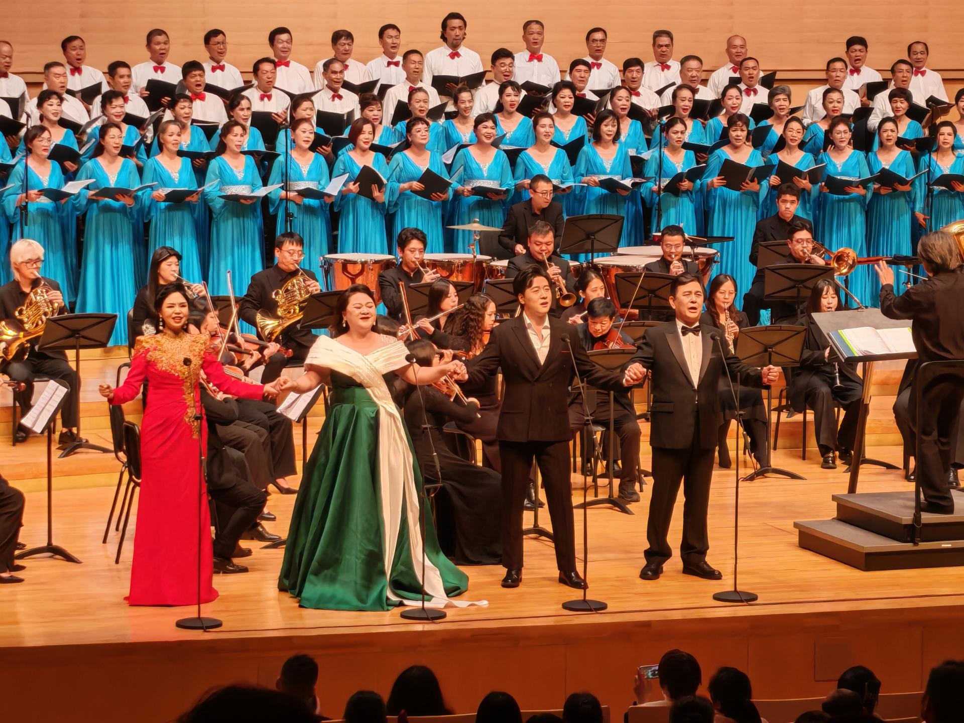 这场高水准的音乐会汇聚了国内顶尖的艺术力量。特邀知名指挥家谭勇斌执棒,国家一级演奏员戴华担任乐团首席,歌唱家杨春梅、何爽、曾子菊、翁英等倾情献唱,另有众多高校优秀教师及老艺术家们共同演奏与合唱。他们以饱满的热情与扎实的功底,让每一首作品都焕发出最佳艺术效果。老中青三代艺术家的接力演绎,不仅展现了艺术传承的力量,更让观众感受到中国交响乐事业蓬勃发展的生机与活力。