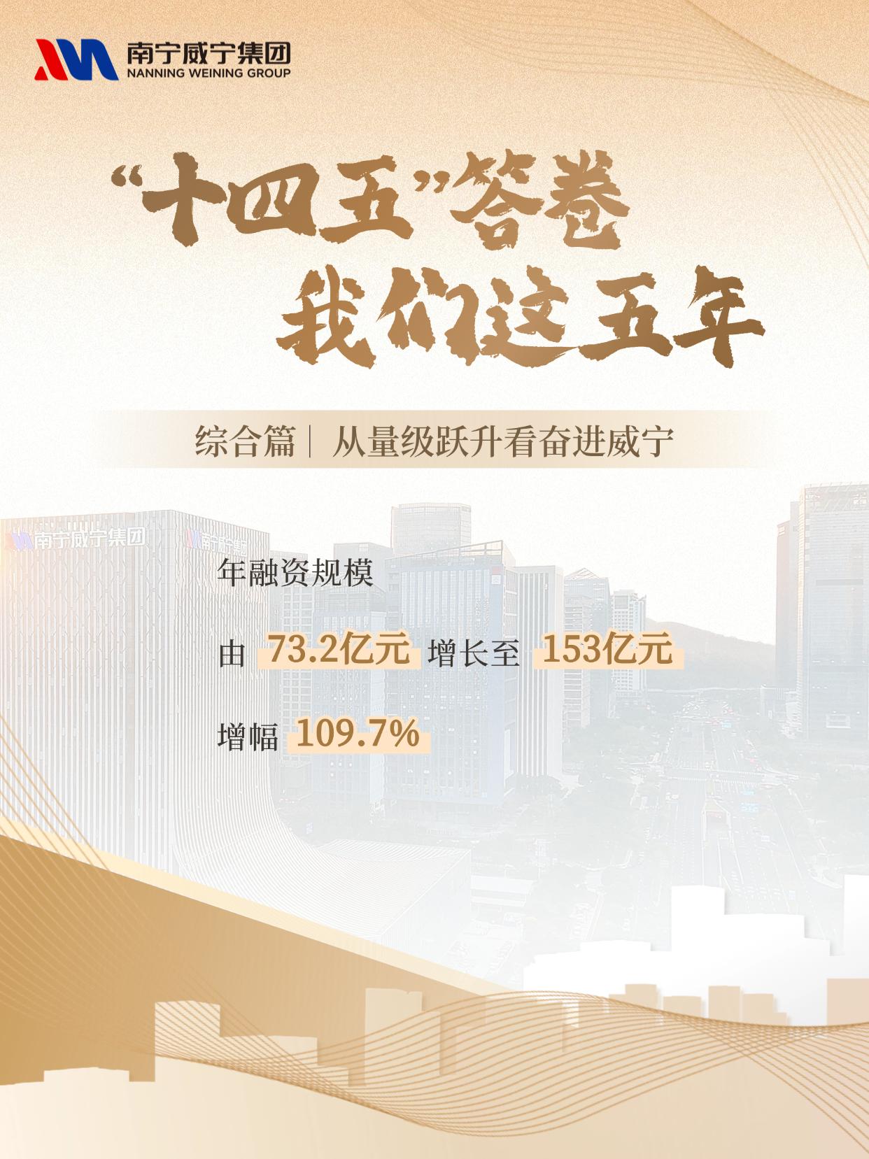 近日,集团微信公众号推出 “‘十四五’答卷 我们这五年” 系列海报,以五个篇章全景呈现威宁“十四五”期间的砥砺历程与发展成就。首期聚焦 “综合篇:从量级跃升看奋进威宁” ,通过一组组扎实的数据、一项项亮眼的成果,见证我们如何实现从规模扩张向提质增效的跨越。资产突破500亿元、营收迈上百亿台阶、融资规模翻番、投资拉动持续发力……这不仅是数字的增长,更是综合实力与服务城市能力同步增强的生动写照。