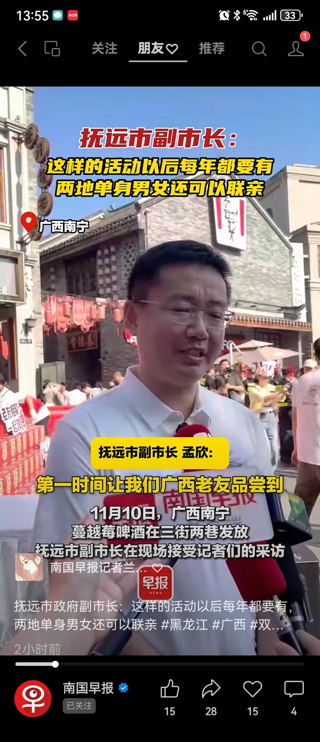 值得一提的是,南宁文旅集团不仅作为南宁市国有企业代表,组织和执行了邕州古城和广西体育中心蔓越莓啤酒发放的工作,让这场“莓”妙奇缘成为了南宁文旅集团耕耘文化交融的美好序曲。同时还以蔓越莓啤酒为媒,牵动两地产业互联互通,后续奏响的“莓”妙奇缘还将体现在蔓越莓下游产业布局在南宁文旅市场的发展,从“南北CP”的文旅互动到产业联动的常态化运行。发放活动当天,南宁文旅集团、抚远市旅投集团和各有关企业在邕州古城·三街两巷邕城印记民俗中心签署产业合作意向书。南宁文旅集团与蔓越莓啤酒生产厂家抚远市抚远镇唯美庄园签订了蔓越莓啤酒的广西总代理,而抚远市黑瞎子岛文化旅游投资集团有限公司也与南宁银河有限责任公司签订了 “邕城老友”袋装老友粉在抚远市的代理委托书,广西和黑龙江两地通过一次次的相互奔赴,将各自的特产、文化进行更深入的交流互通,让更多的广西老友品尝到东北味道,也让东北老铁感受到来自南宁老友粉的魅力。