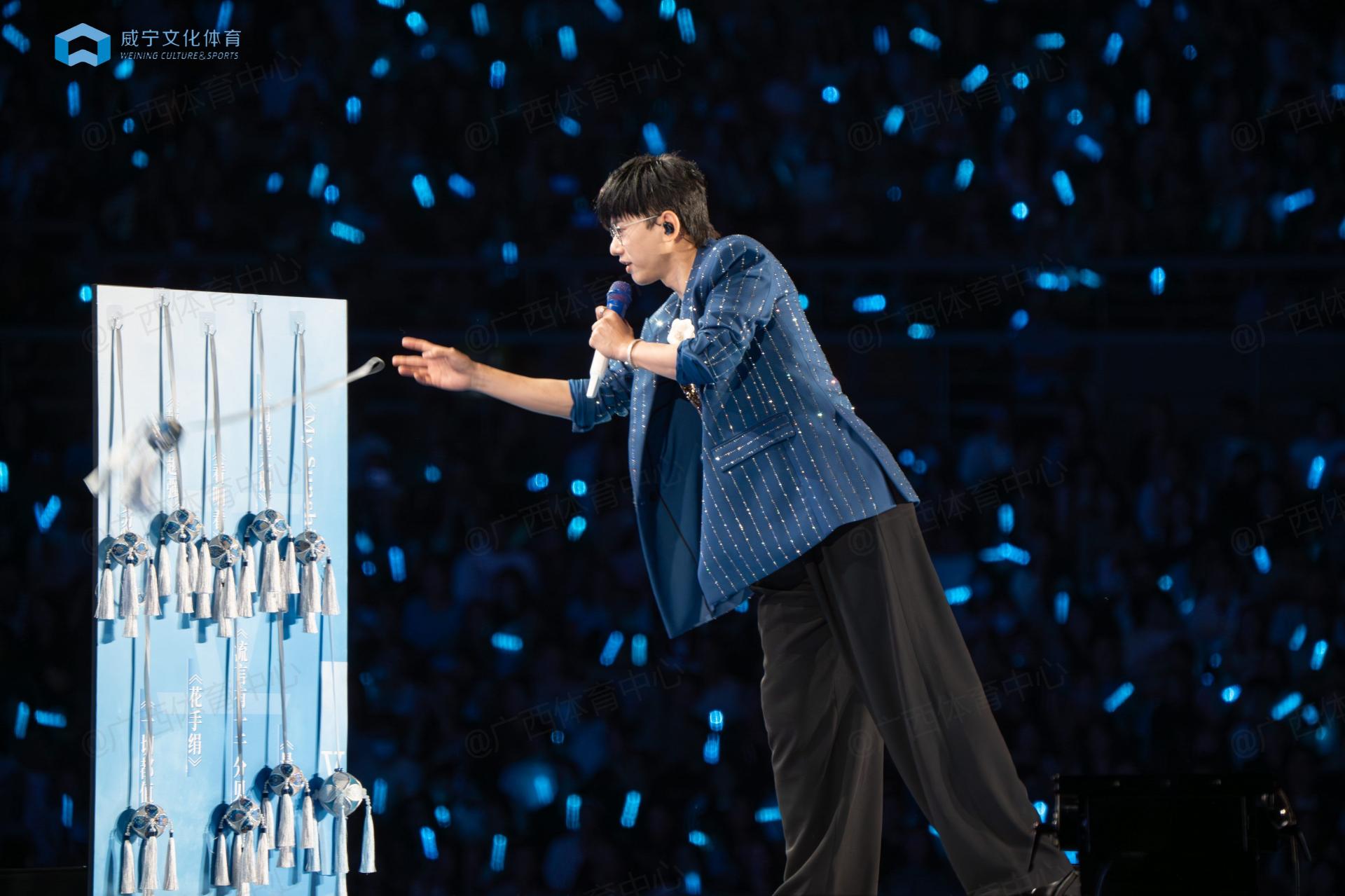 在观演现场,明星大咖也在广西体育中心开启“独宠”模式,从周华健和任贤齐身着壮族传统织锦献唱,到张信哲热情推荐广西美食,再到张杰亲身体验广西民俗文化“抛绣球”,明星与粉丝的互动引发一轮轮话题热潮,广西体育中心演出现场的热度和“含金量”在不断攀升。