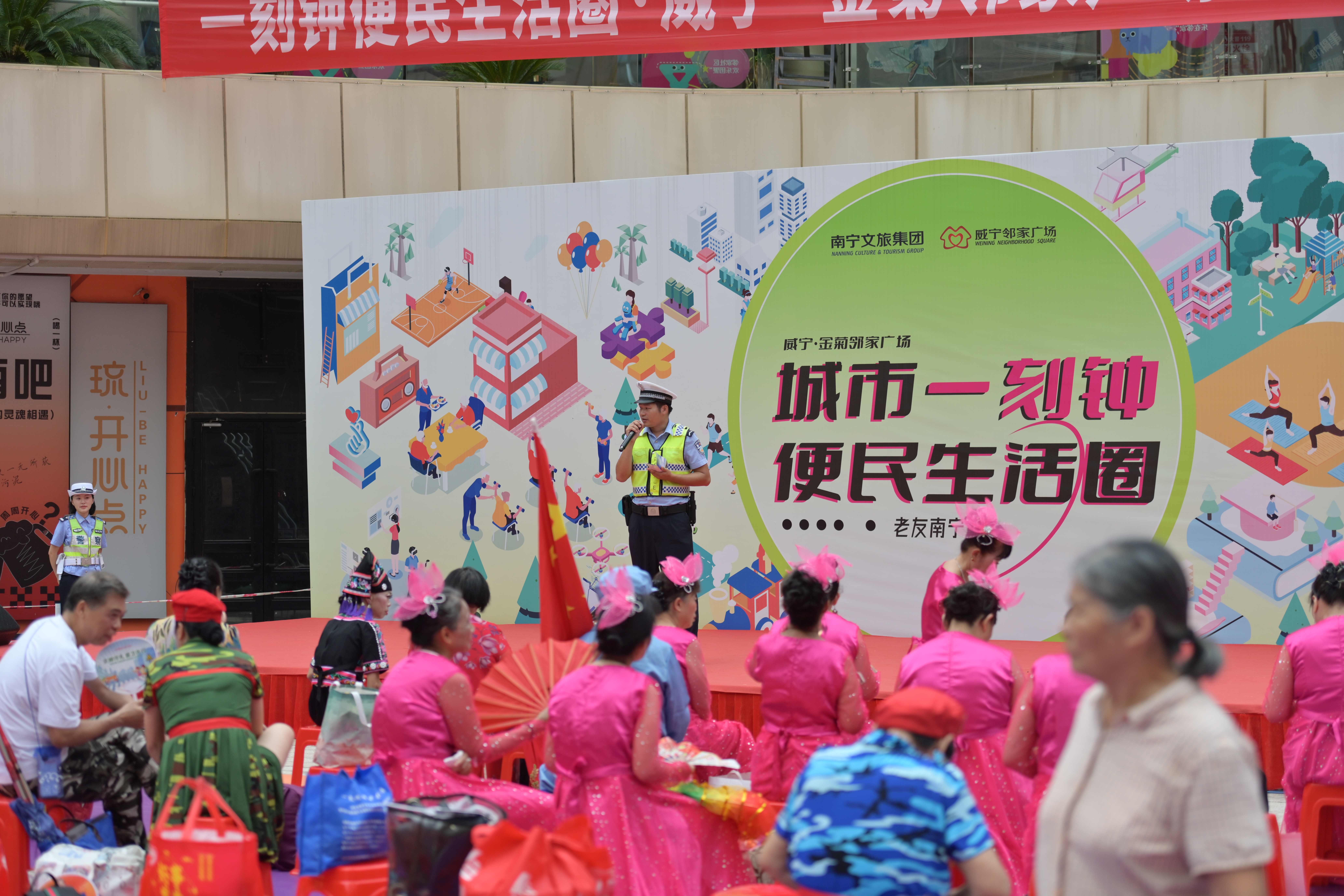 特邀嘉宾南宁市公安局交警支队七大队民警的登场,更让安全成为生活圈的“隐形守护”。通过趣味普法互动与交通安全问答,民警将“社区周边出行安全”讲得生动易懂,现场居民举手抢答,赢走实用奖品的同时,也把安全意识记在了心里。