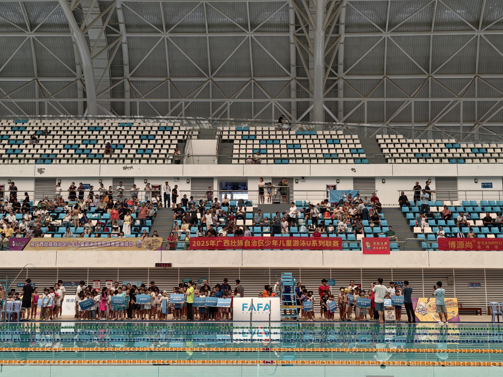 8月23日、24日,2025广西少年儿童游泳 U 系列联赛(第一站)在南宁文旅集团旗下广西体育中心游泳跳水馆成功举办。本站赛事由广西水上运动发展中心指导、广西游泳协会主办,南宁文旅集团旗下威宁文体公司与八桂泳联公司联合承办。共吸引全区市县45支代表队600余名游泳小将汇聚赛场竞技,以碧波为纽带传递热情、记录成长,为联赛的首站划上圆满句号。
