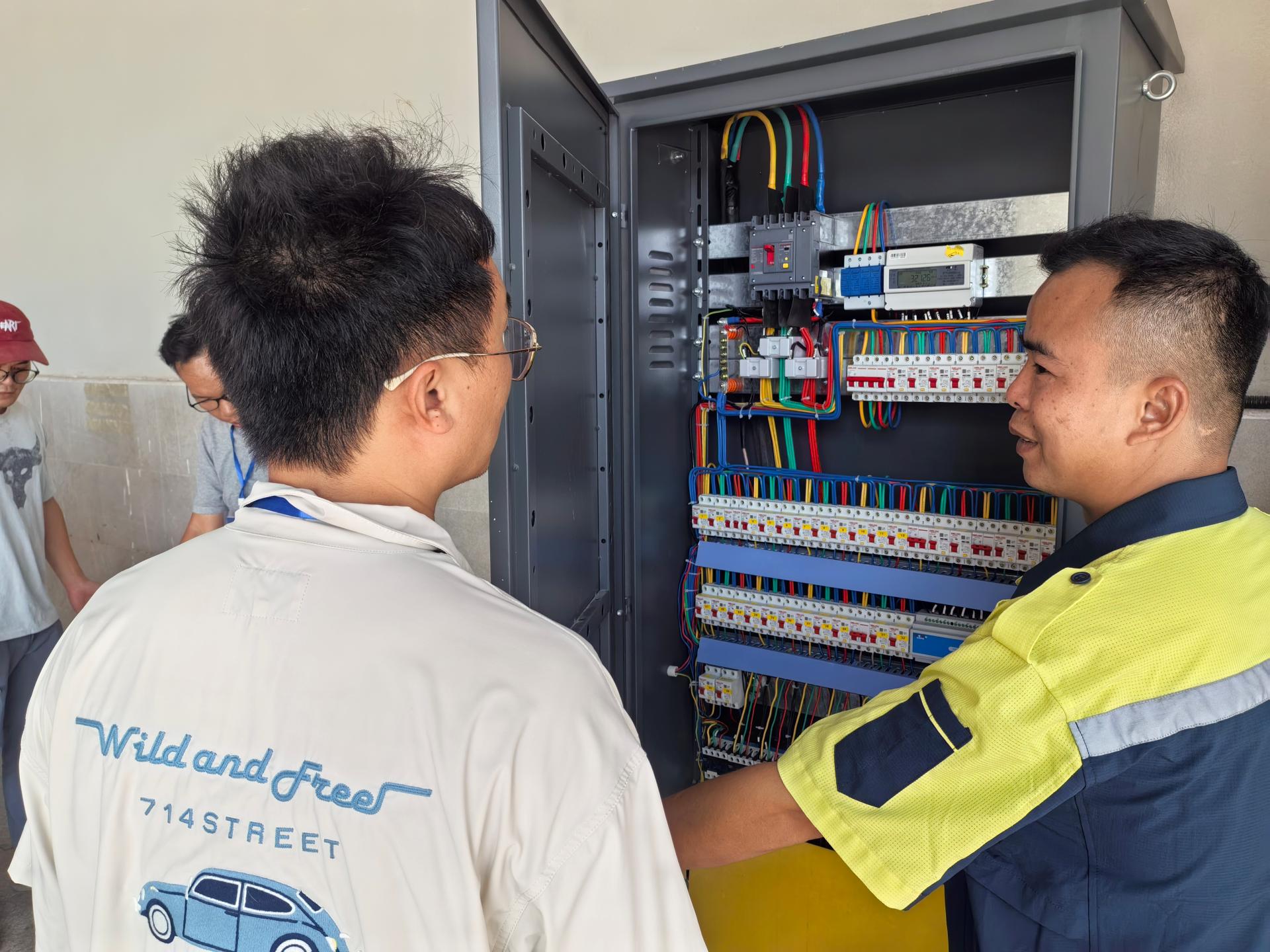 工程师逐个检查配电箱