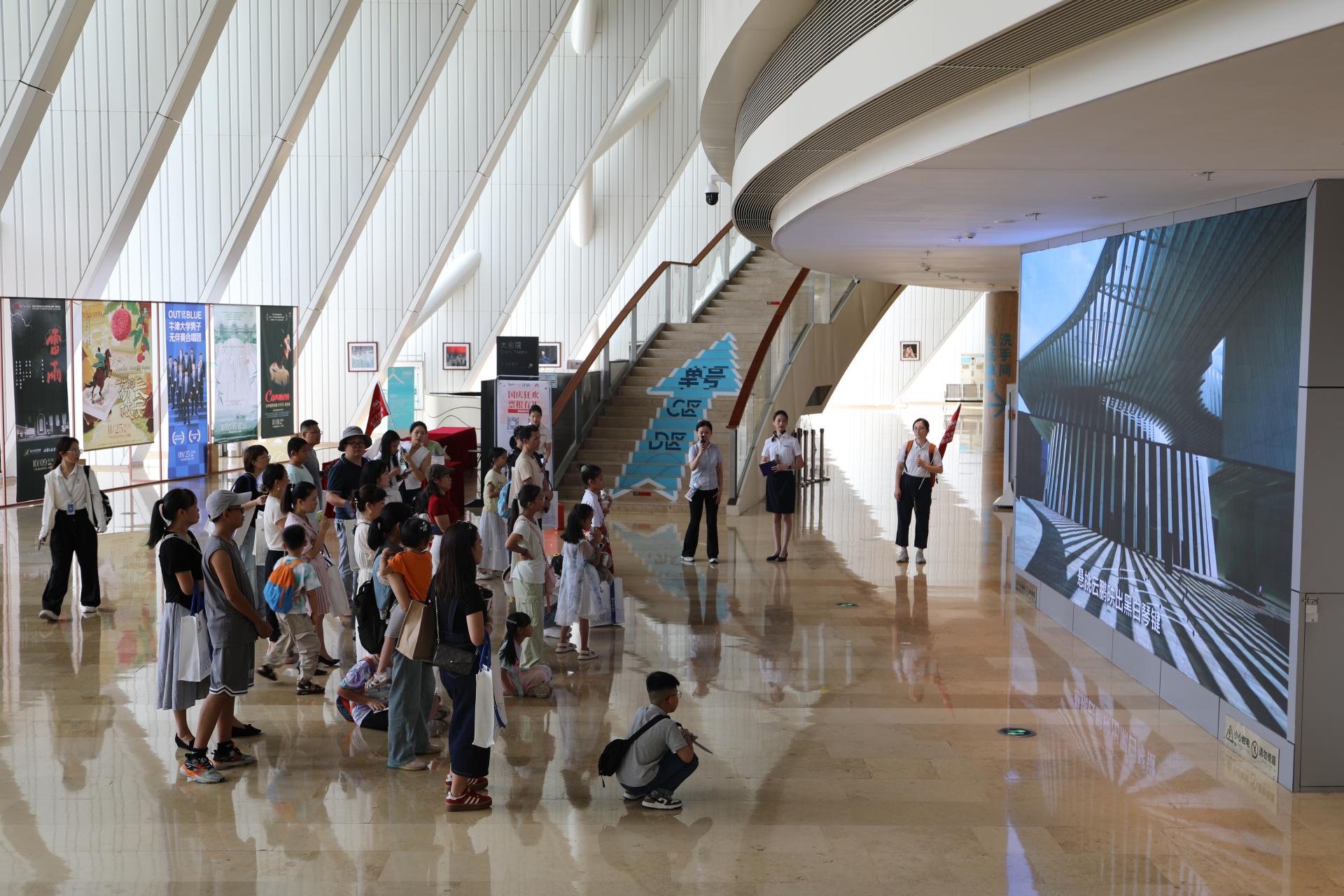 走进广西文化艺术中心,学员们进入大剧院恢弘大堂,沉浸式观看广西文化艺术中心宣传视频,感受这座艺术殿堂的独特气质与魅力,然后深入大剧院,开启专属参观之旅,全方位了解剧院的建筑特色、功能布局与艺术底蕴。