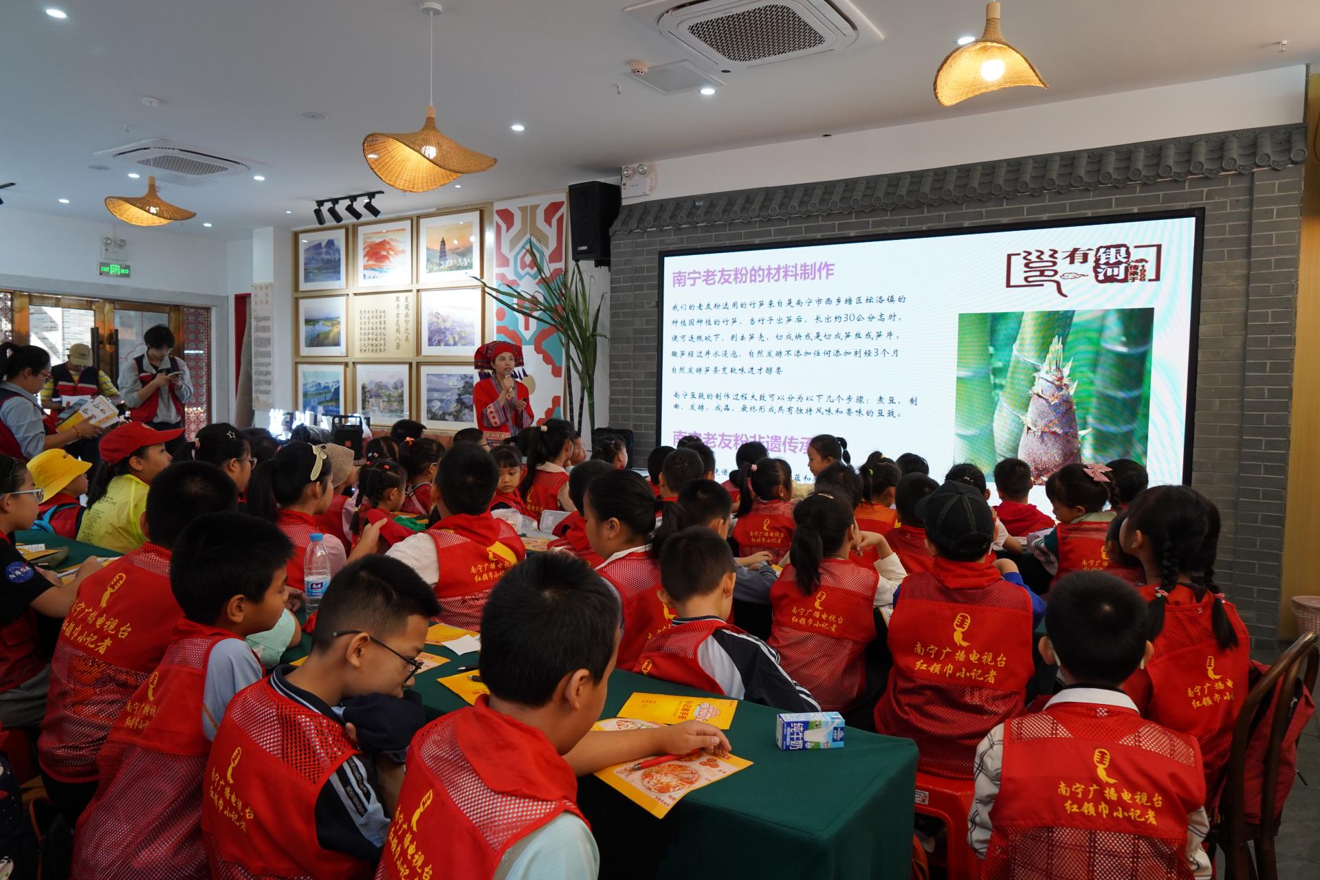 让非遗文化走进青少年,是南宁文旅集团的另一重探索。通过构建多元研学体系,邕城印记已成为沉浸式文化教育实践的重要平台。门店与南宁市融媒体中心深度联动,推出的"探秘老友粉之旅"系列研学课程,开业一年来累计接待研学人数超500人次,并成功吸引南宁"小砂糖橘"与吉林市"雾凇宝贝"等研学团队到店体验,实现跨地域文化交流。同时,与南宁市第一职业技术学校共同设立实训基地,共同培育餐饮文化传承与创新人才,并通过节假日“夜间课堂+沉浸体验”的创新形式,让非遗研学成为青少年群体认知传统文化、提升文化自信的热门选择,推动本土传统文化走向更广阔的受众。