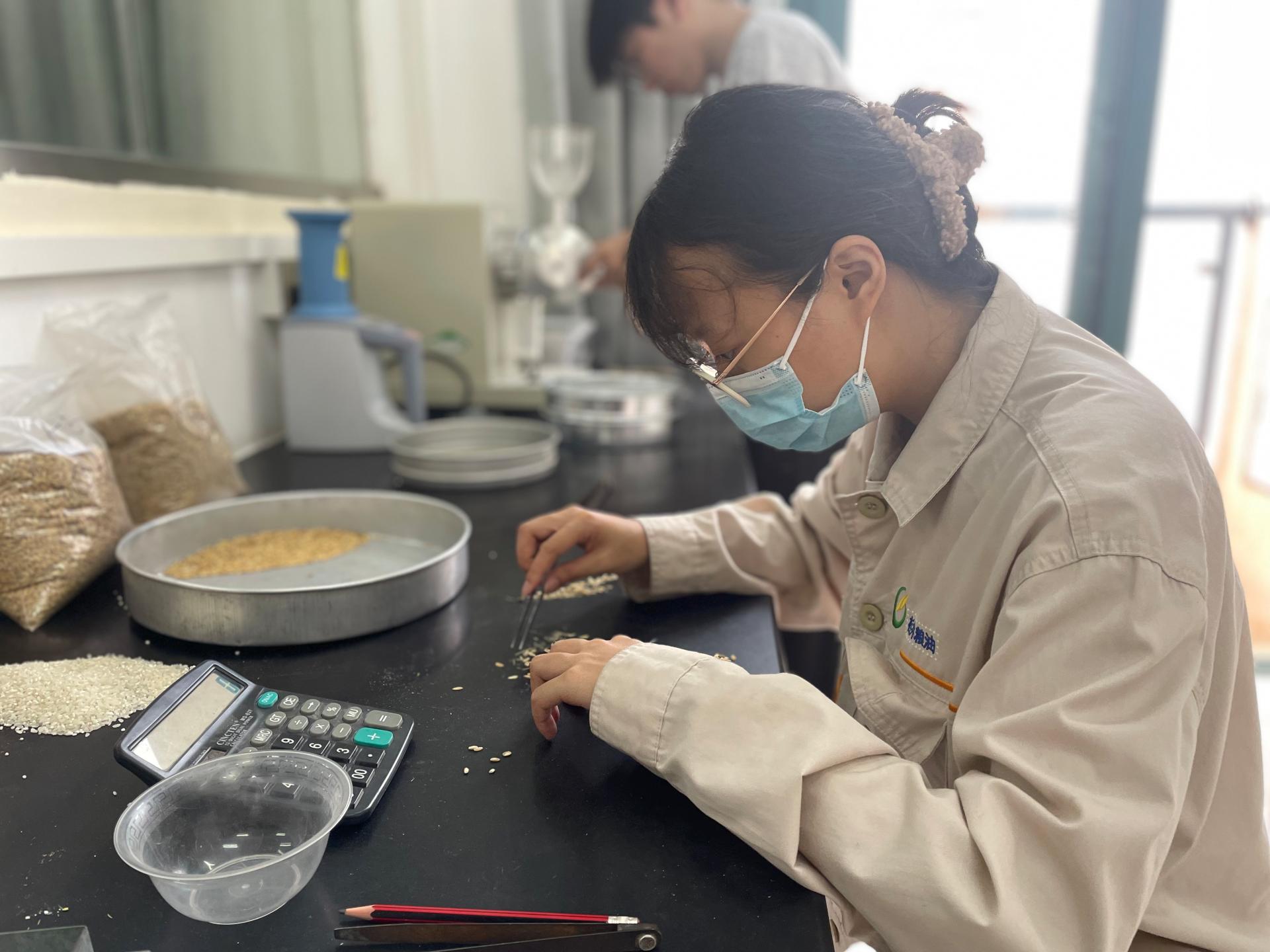 品控员检测入库稻谷质量