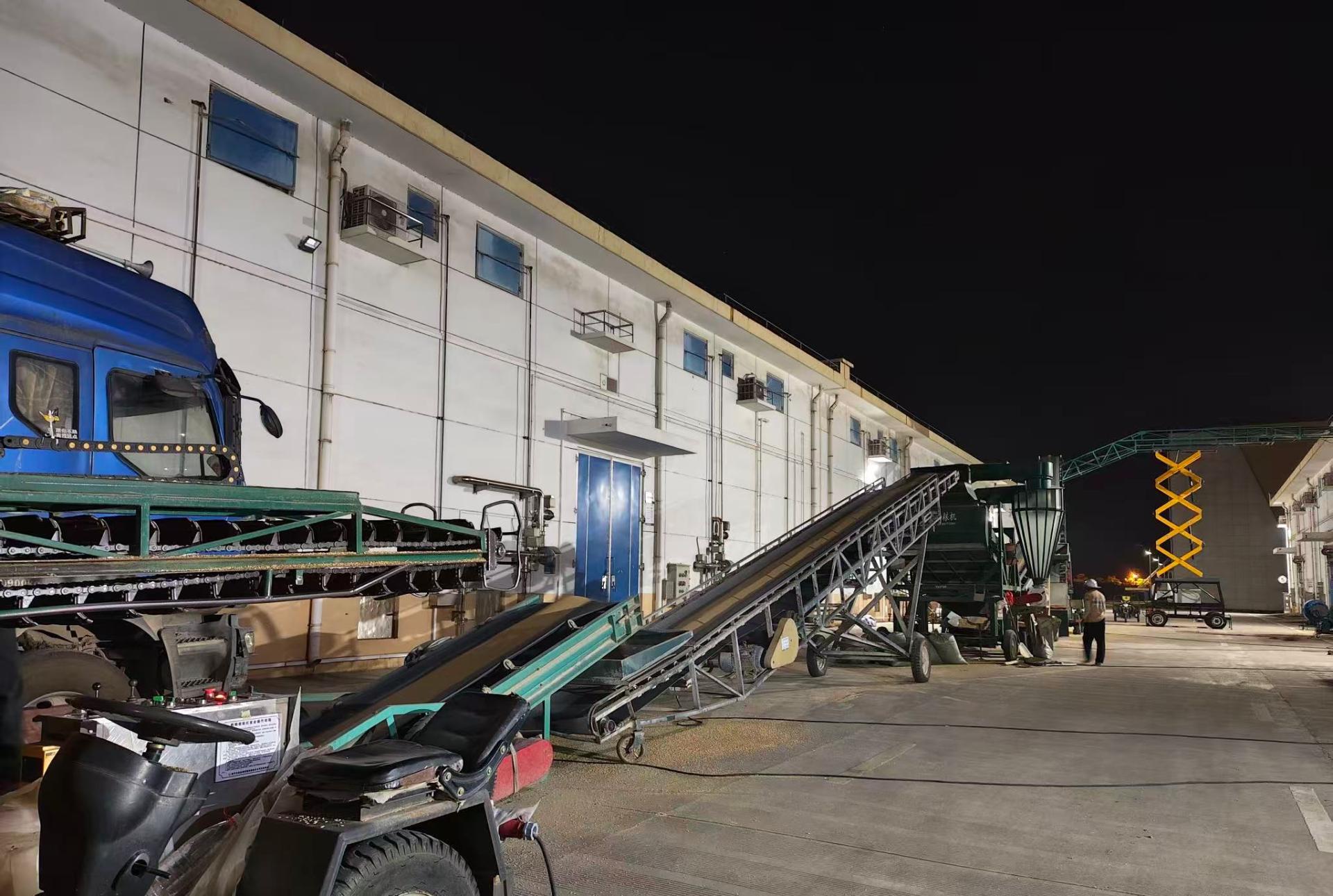 夜间收粮现场