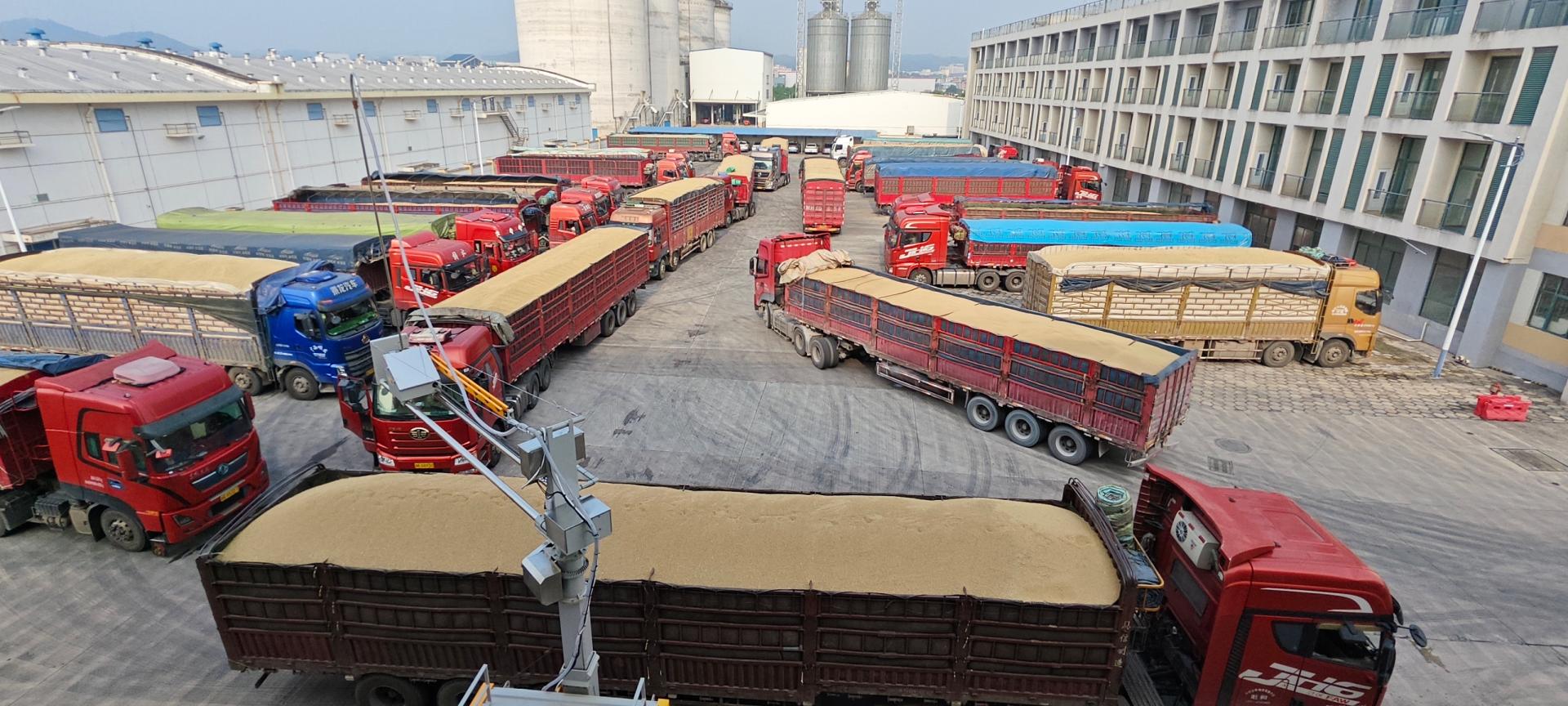 夏粮入库期间来粮车辆络绎不绝