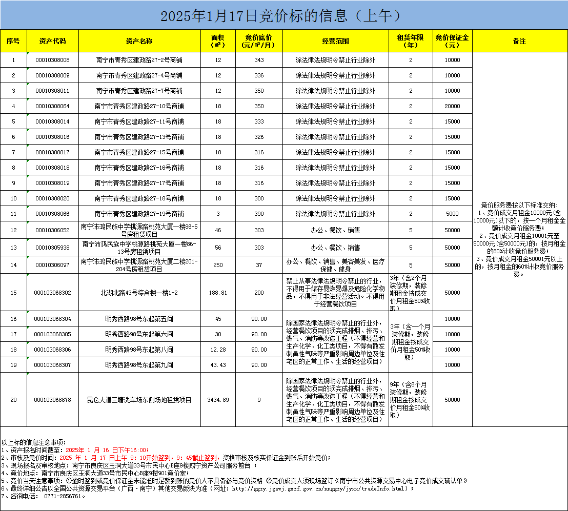 2025年1月17日竞价标的信息(现场竞价)