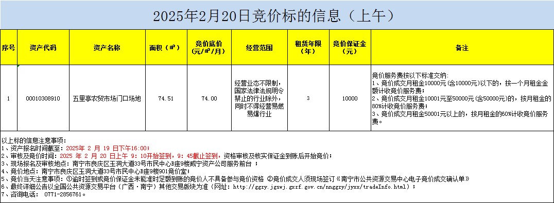 2025年2月20日竞价标的信息(上午)
