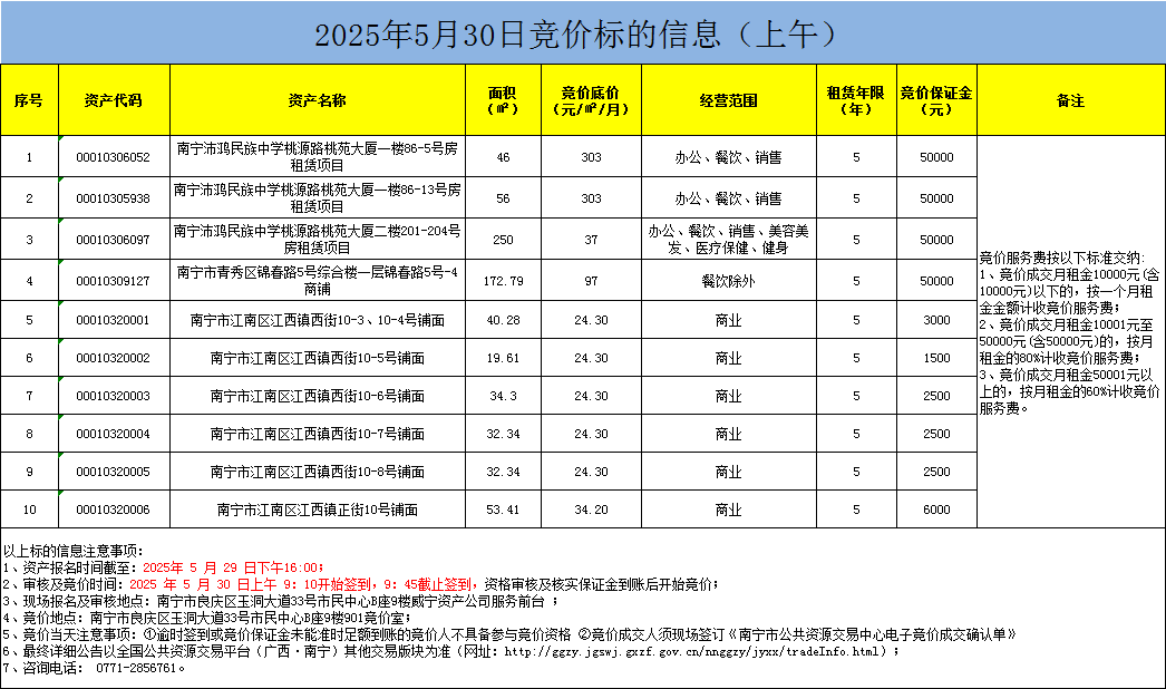 2025年5月30日竞价标的信息(现场竞价)