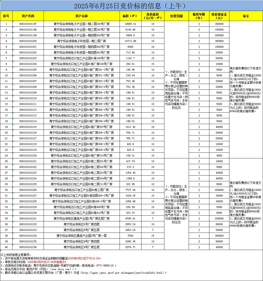 2025年6月25日竞价标的信息(线上竞价)