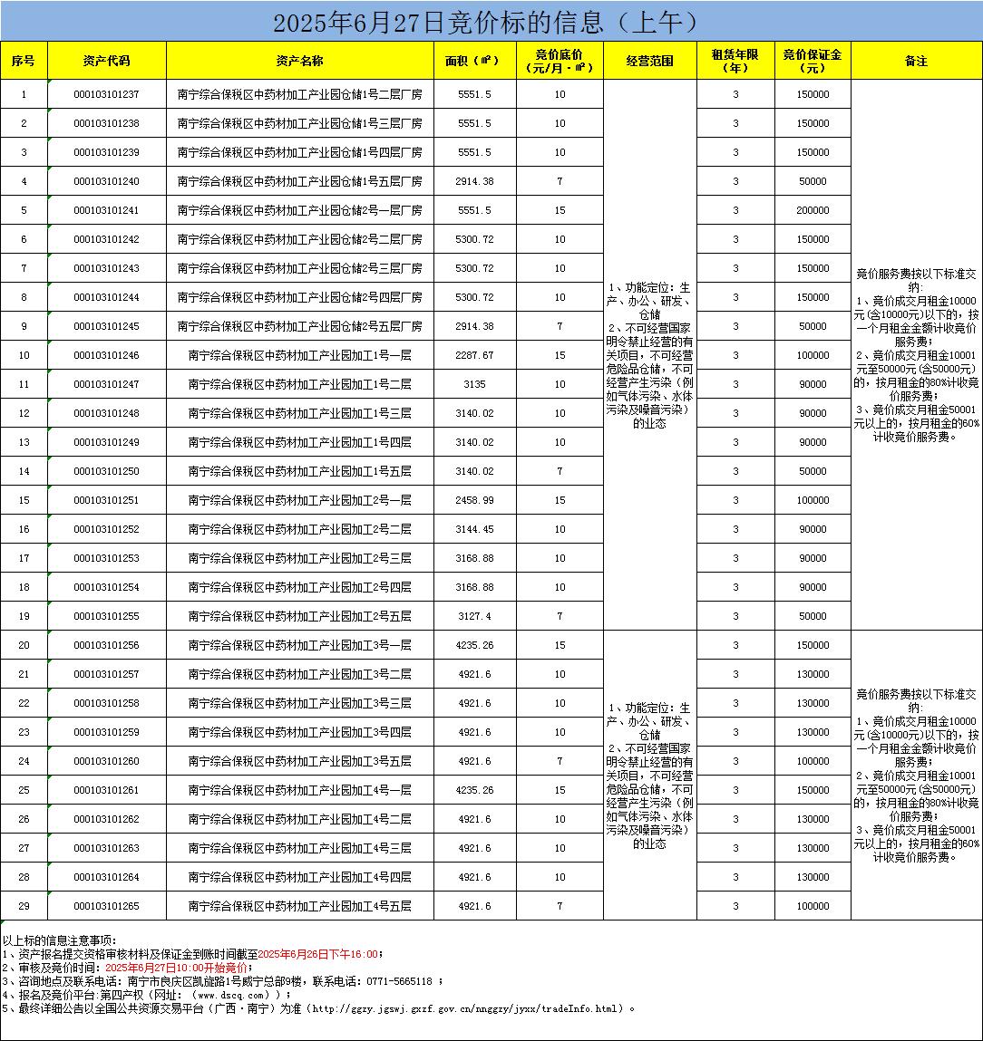 2025年6月27日竞价标的信息(线上竞价)