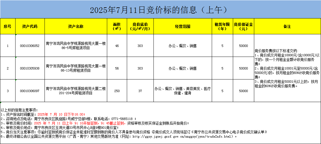 2025年7月11日竞价标的信息(现场竞价)