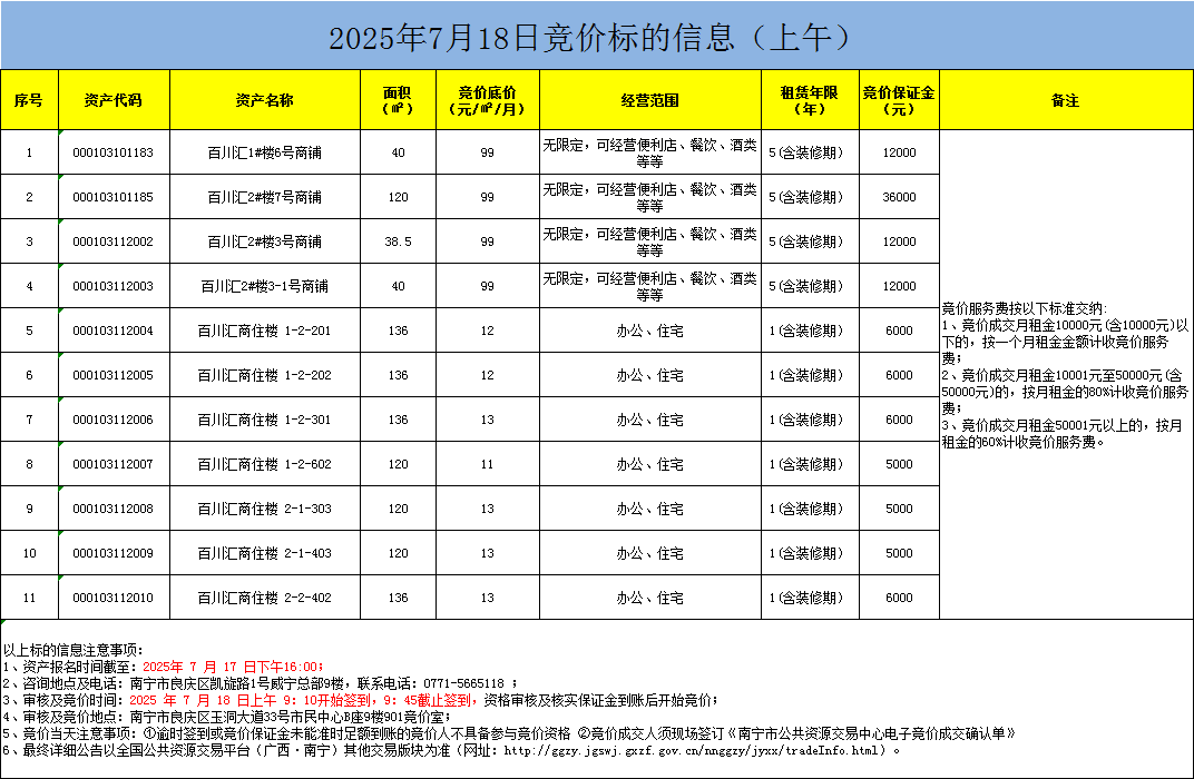 2025年7月18日竞价标的信息(现场竞价)