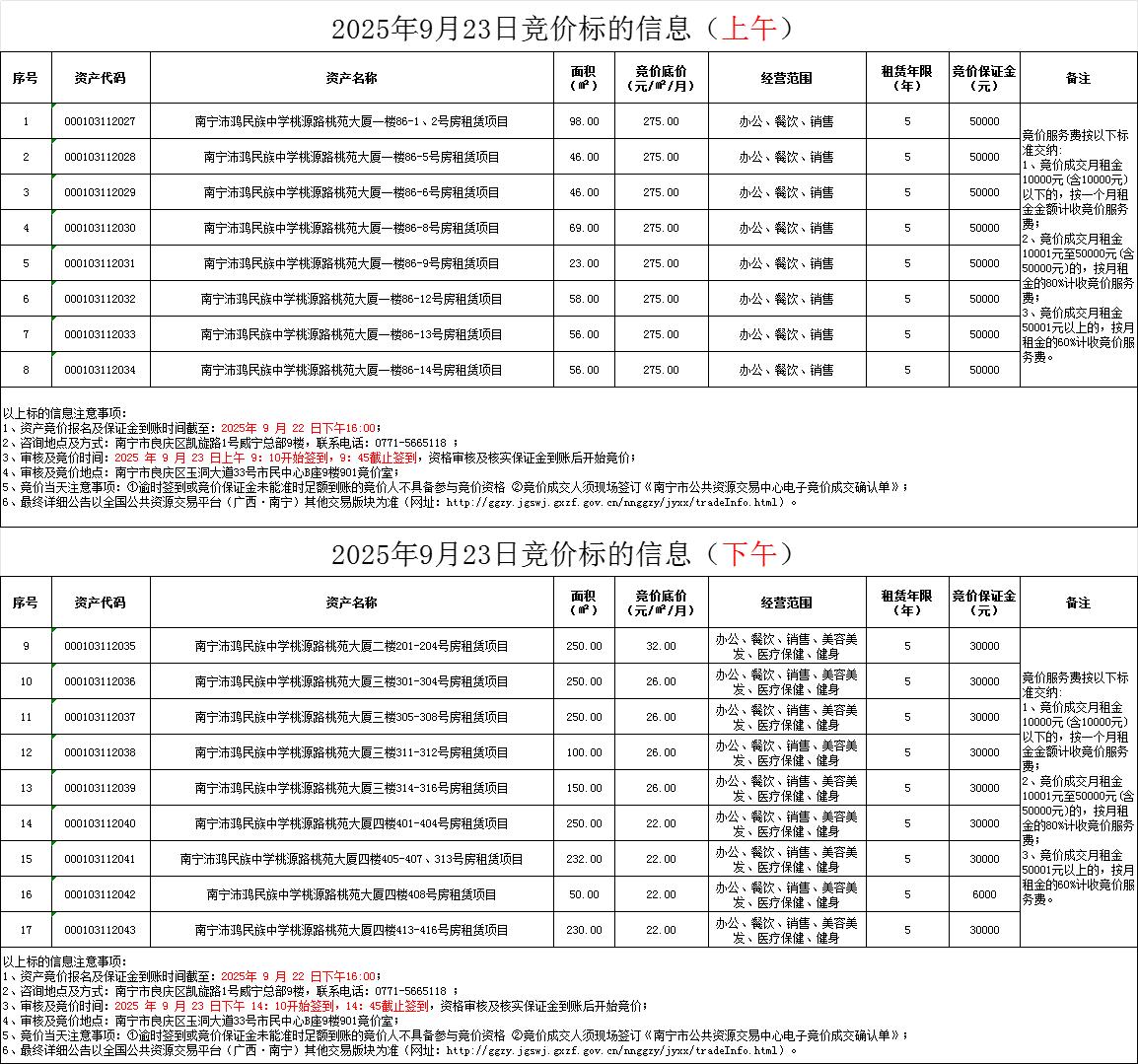 2025年9月23日竞价标的信息(现场竞价)