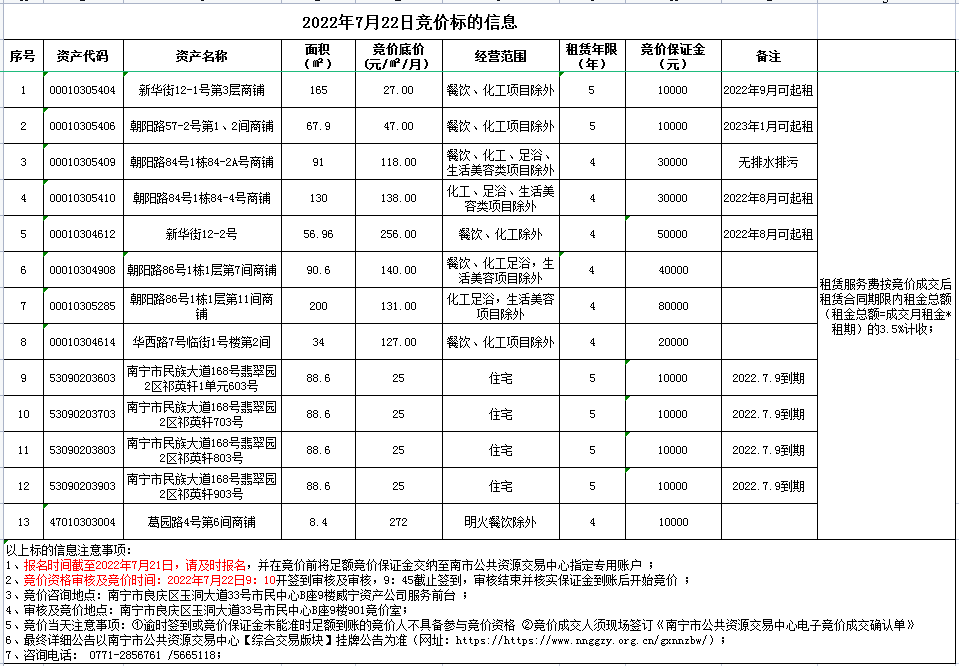 威宁资产公司2022年7月22日公开竞价标的信息