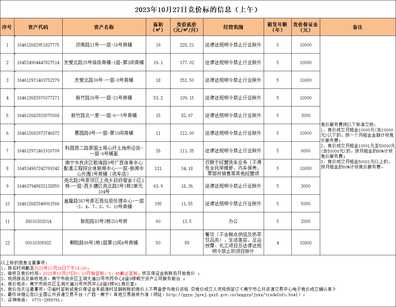 2023年10月27日竞价标的信息