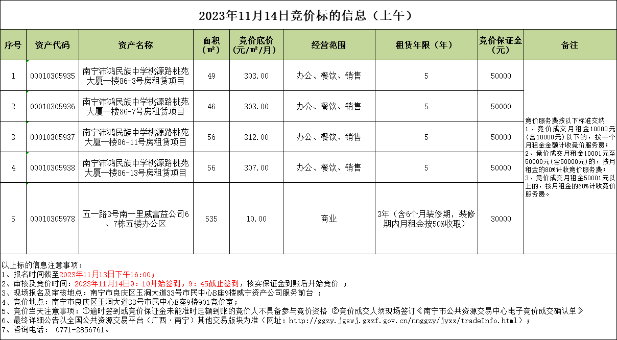 2023年11月14日竞价标的信息