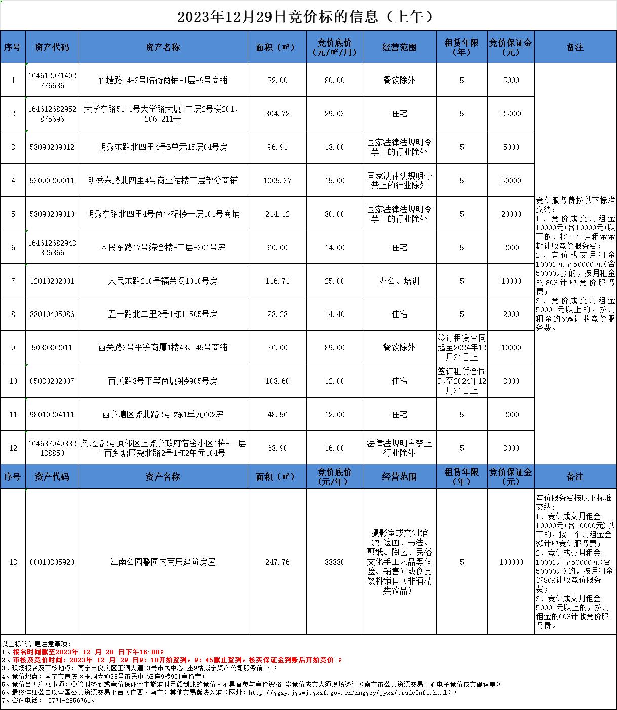 2023年12月29日竞价标的信息
