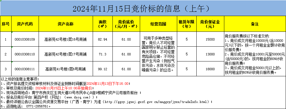 2024年11月15日竞价标的信息(线上竞价)