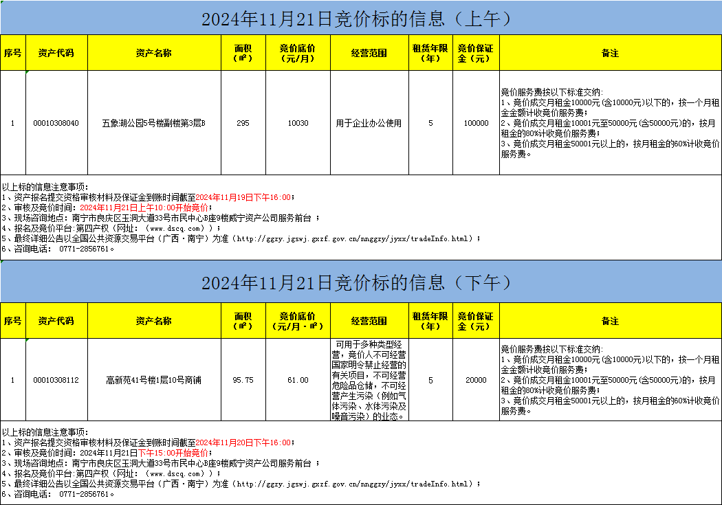 2024年11月21日竞价标的信息(线上竞价)