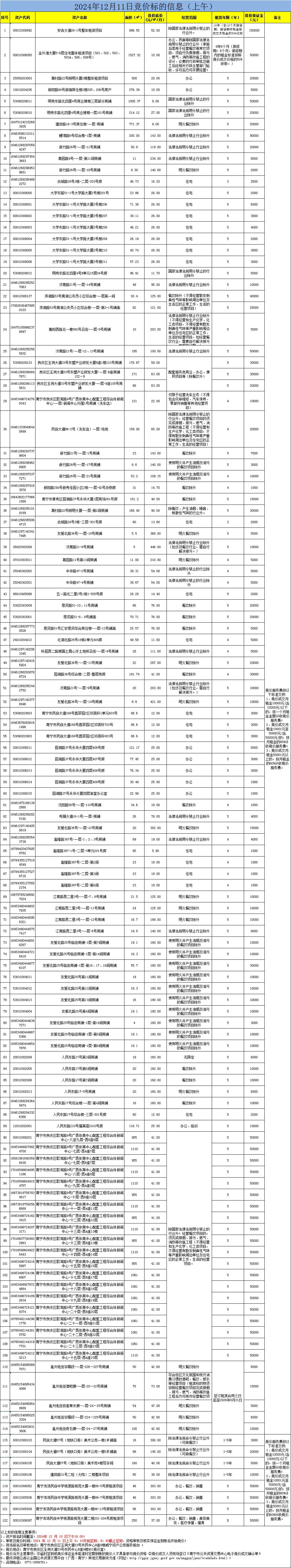 2024年12月11日竞价标的信息(现场竞价)