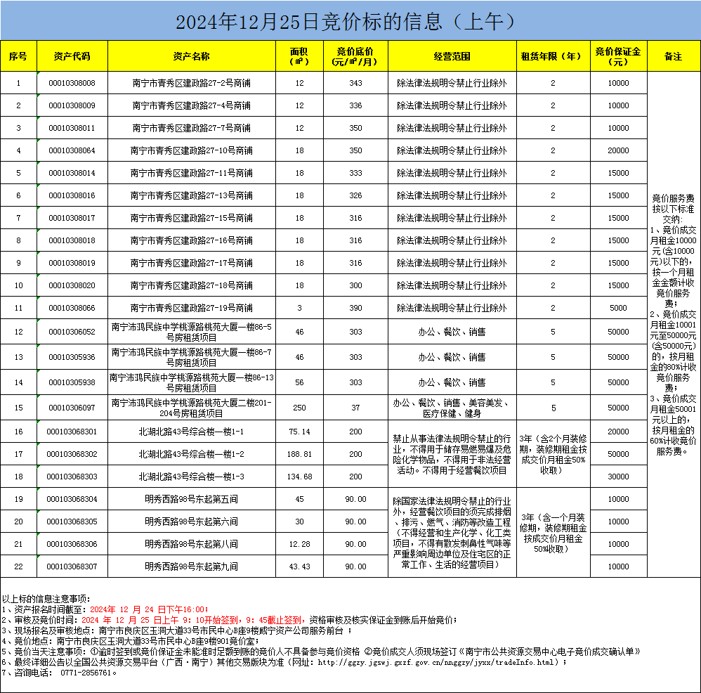 2024年12月25日竞价标的信息(现场竞价)