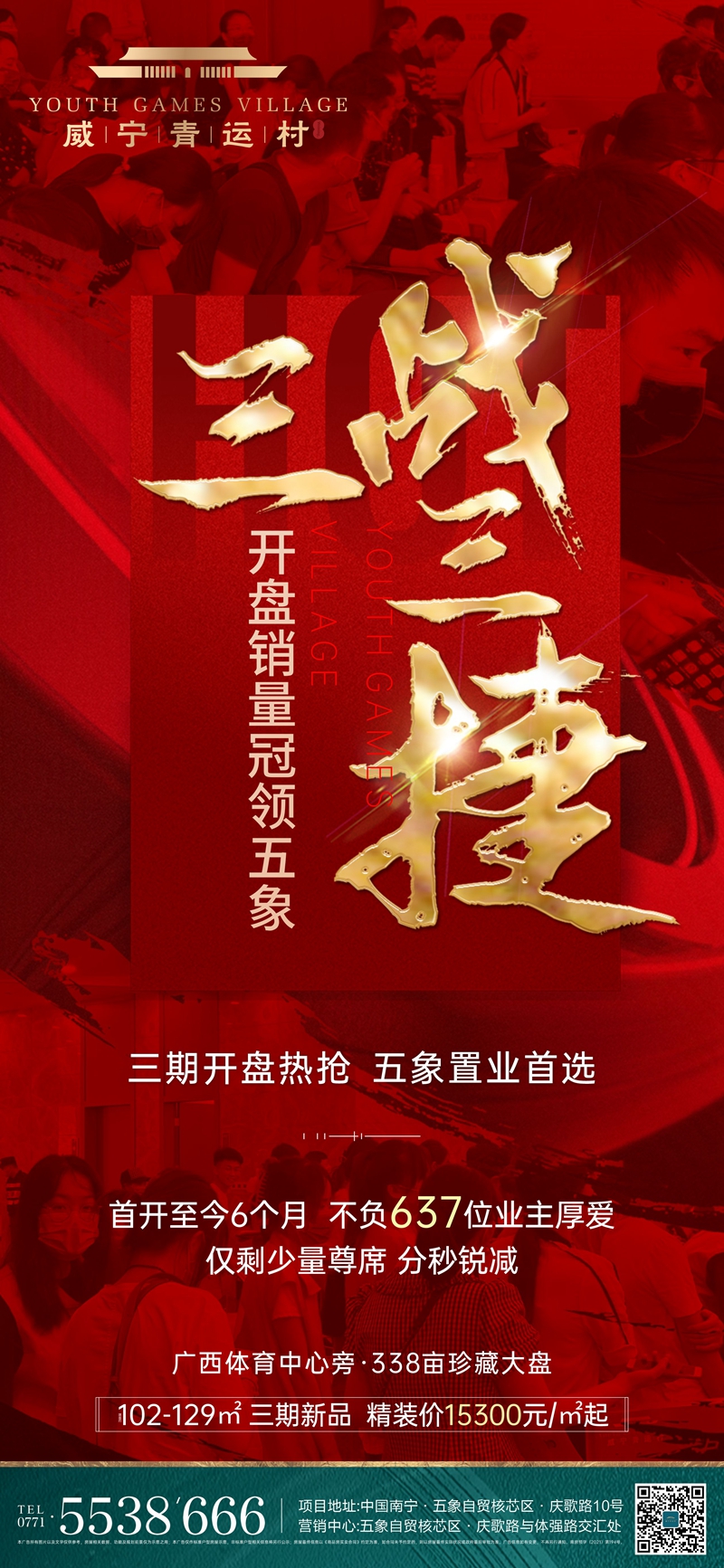 7月25日,威宁青运村三期新品开盘热抢,紧随一、二期销售热势,三战三捷,首开至今6个月,不负637位业主的厚爱,实锤“五象红盘”!