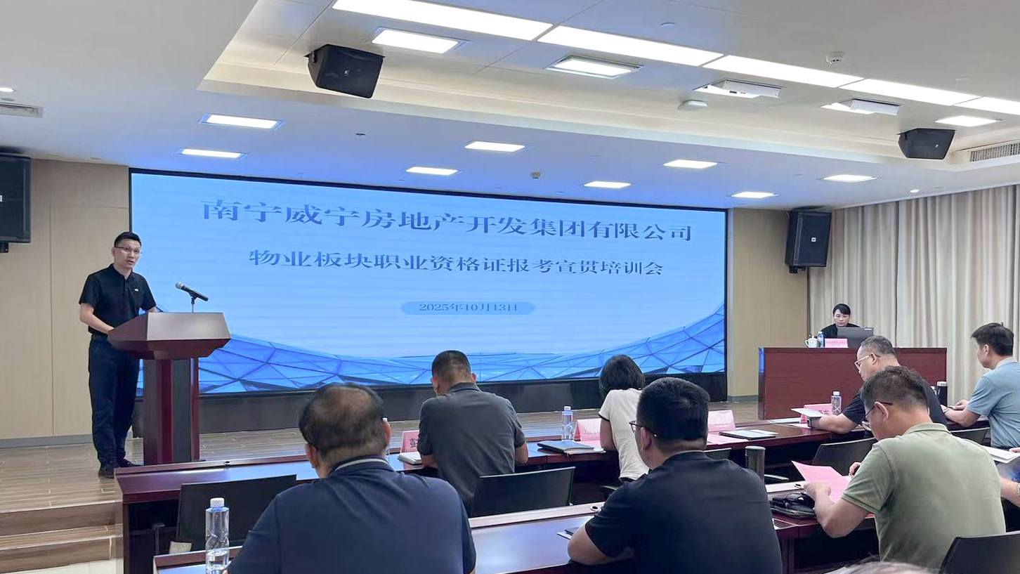 会议现场近日,南宁威宁集团所属威宁房地产开发集团物业板块职业资格证报考宣贯培训正式启动,标志着公司“项目建设+物业服务”双轮驱动战略下人才体系建设进入新阶段。本次培训旨在为员工梳理职业发展路径,搭建专业成长平台,为物业板块高质量发展注入新动能。精准解读——阐明证书价值与报考路径本次宣贯培训聚焦员工最关切的职业发展问题,系统解析了物业行业关键岗位的证书要求。培训讲师从政策层面入手,详细解读了《安全...