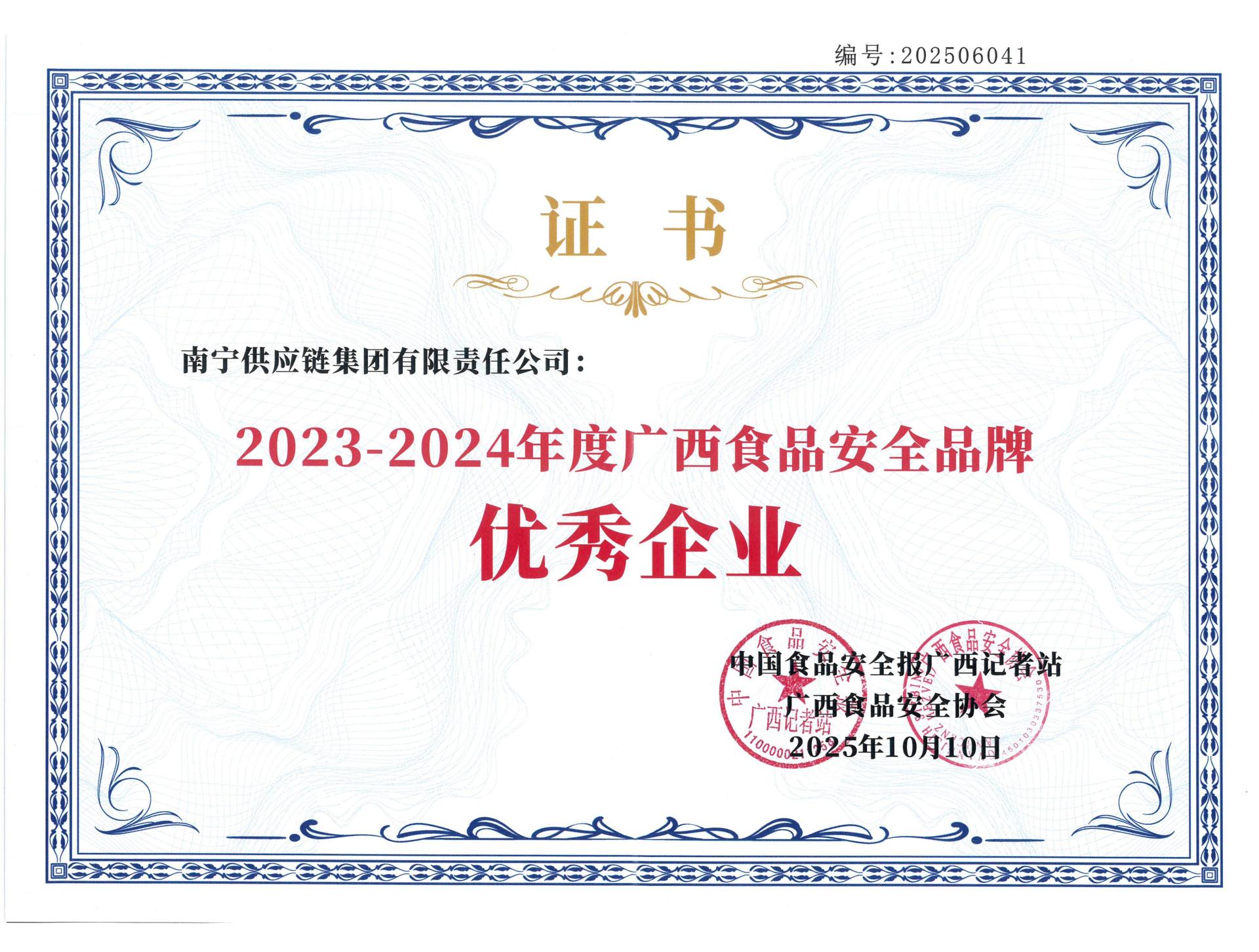 南宁供应链集团荣获“广西食品安全品牌优秀单位”称号