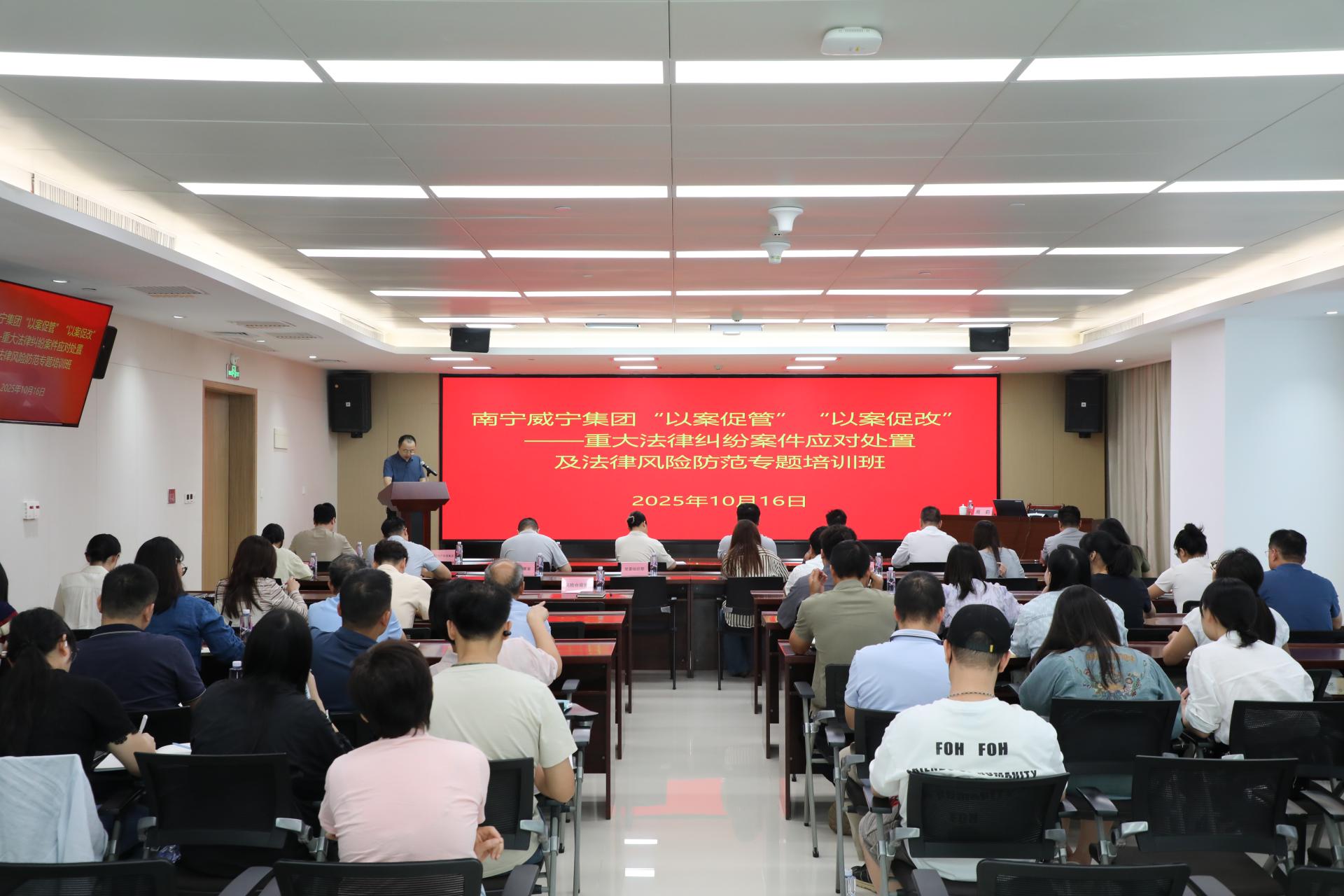 活动现场为深入贯彻落实全面依法治企要求,切实提升集团及各下属企业应对重大法律纠纷案件及法律风险的能力,深刻剖析典型案例,总结经验教训,推动管理提升与制度完善,实现“办理一案、警示一片、规范一方”的治理效果,2025年10月16日下午,南宁威宁集团在威宁总部大厦501会议室举办“以案促管”“以案促改”——重大法律纠纷案件应对处置及法律风险防范专题培训班。集团副总经理黄志炜出席培训活动。培训邀请北京大成(南...