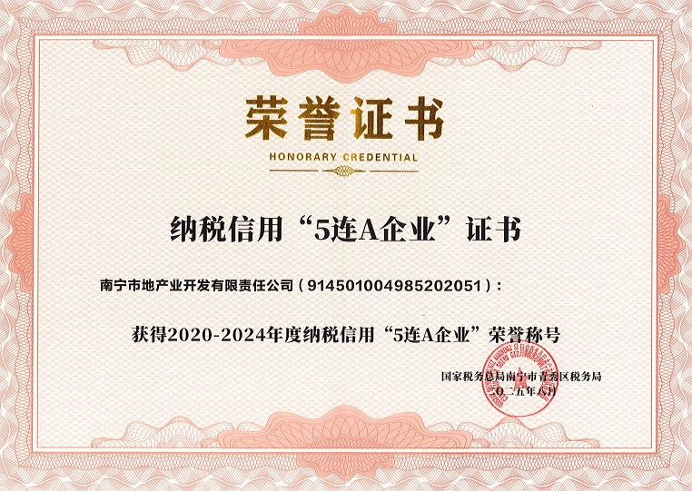 近日,南宁威宁集团下属企业威宁房地产开发集团所属地产业公司获得国家税务总局南宁市青秀区税务局授予的2020-2024年度纳税信用“5连A企业”荣誉称号。这一荣誉是税务系统对连续五年纳税信用评级均为A级企业的高度认可,也是威宁房地产开发集团下属企业首次斩获此项殊荣。纳税信用等级评价是税务管理部门对企业税务合规性、诚信度和管理水平的综合衡量,其中A级为最高等级。能够连续五年维持A级评价,体现了地产业公司在税务...