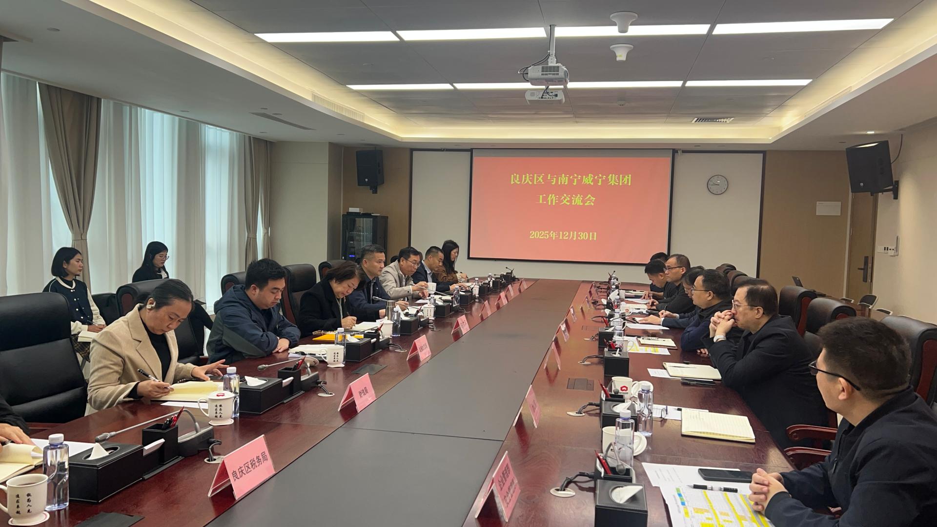 2025年12月30日上午,五象新区(自贸试验区南宁片区)管委会副主任、良庆区委书记陆广平带队到南宁威宁集团开展工作交流。双方就进一步拓展合作空间、深化产业协同联动、实现共赢发展等方面深入交换意见并达成共识。会上,南宁威宁集团党委副书记、总经理苏庆威对陆广平一行的到来表示欢迎,并详细介绍了集团发展情况。他表示,“十四五”期间,南宁威宁集团始终紧扣“公共事业与文旅产业投资运营国有资本平台”核心定位,坚决...