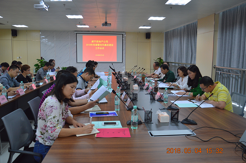 2018年5月4日,南宁威宁集团副总经理、威宁房地产公司党总支书记朱海主持召开威宁房地产公司2018年党建暨党风廉政建设工作会议。对2017年党建及党风廉政建设工作进行总结回顾,对2018年工作进行安排部署。