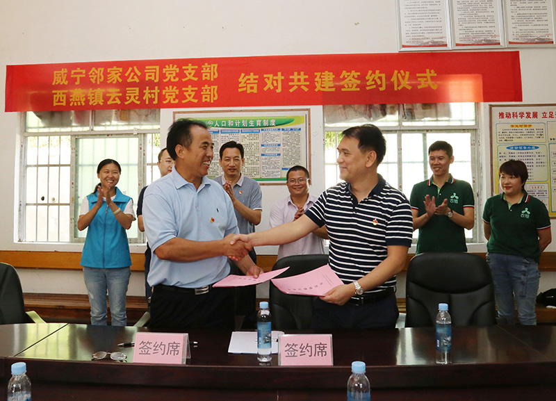 2018年6月29日,集团公司党委副书记马超毅与威宁邻家公司党支部党员、积极分子13人,到上林县西燕镇云灵村开展签署支部共建协议、精准脱贫框架协议、慰问困难党员、到田地里收玉米,航拍筹建微信公众号志愿服务活动,不仅为云灵村扶贫发展奉献了一份力量,更为云灵村带去了扶贫的志向。