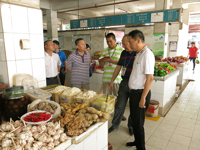 2018年6月12日,南宁威宁集团党委副书记马超毅、副总经理黎镇宇率督查组深入威宁市场公司经营管理的邕宁商场、那元果菜市场,开展督查指导农贸市场创卫复审迎检和安全管理工作。