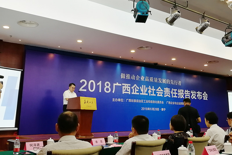 6月28日,自治区工业和信息化委员会、广西企业与企业家联合会在南宁举行“2018广西企业社会责任报告发布会”,广西投资集团、南宁威宁集团等57家企业发布了2017年度社会责任报告,企业数量比上一年增加23家,创历届新高,南宁威宁集团连续三年参加发布会。