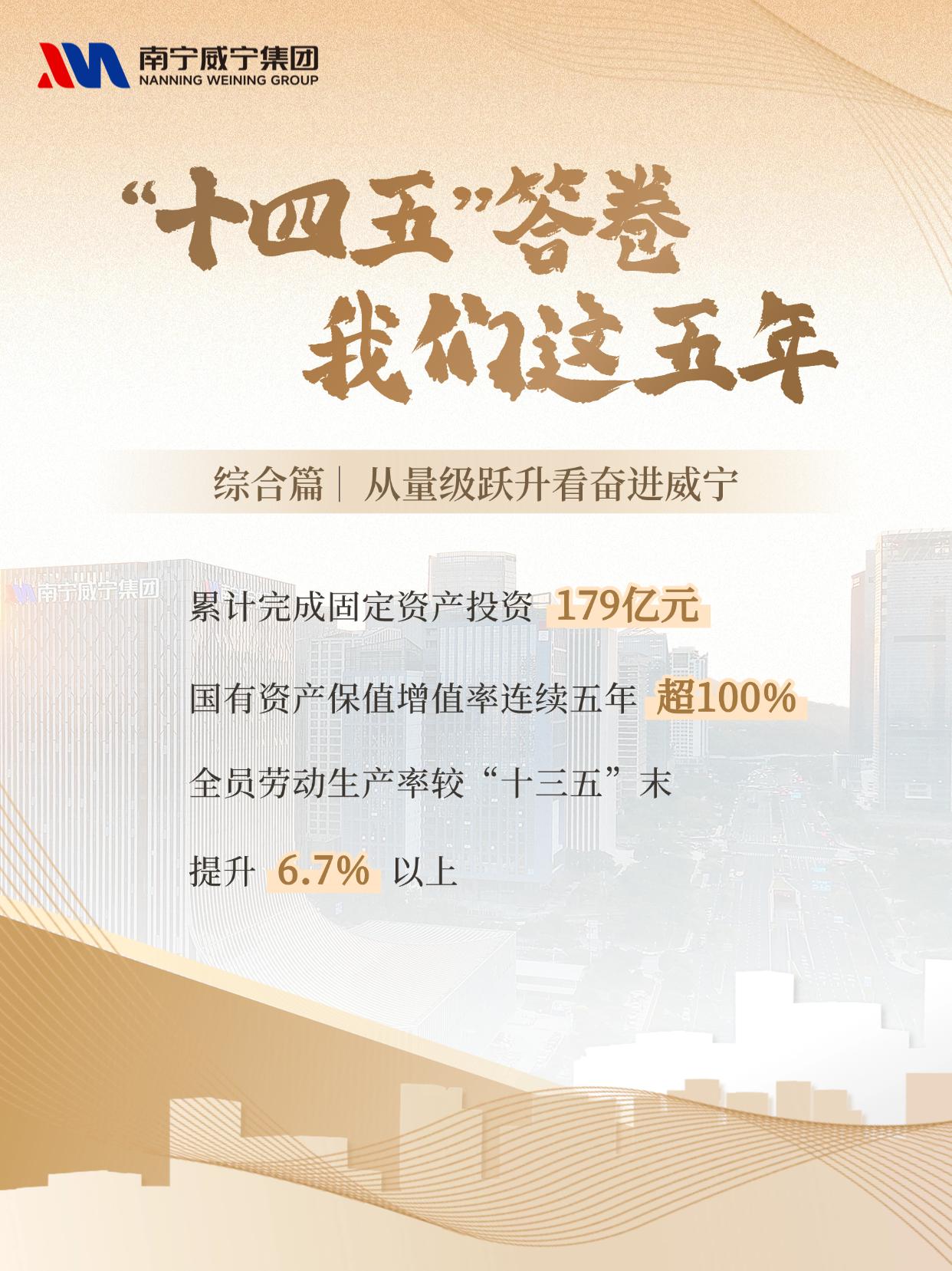 近日,集团微信公众号推出 “‘十四五’答卷 我们这五年” 系列海报,以五个篇章全景呈现威宁“十四五”期间的砥砺历程与发展成就。首期聚焦 “综合篇:从量级跃升看奋进威宁” ,通过一组组扎实的数据、一项项亮眼的成果,见证我们如何实现从规模扩张向提质增效的跨越。资产突破500亿元、营收迈上百亿台阶、融资规模翻番、投资拉动持续发力……这不仅是数字的增长,更是综合实力与服务城市能力同步增强的生动写照。