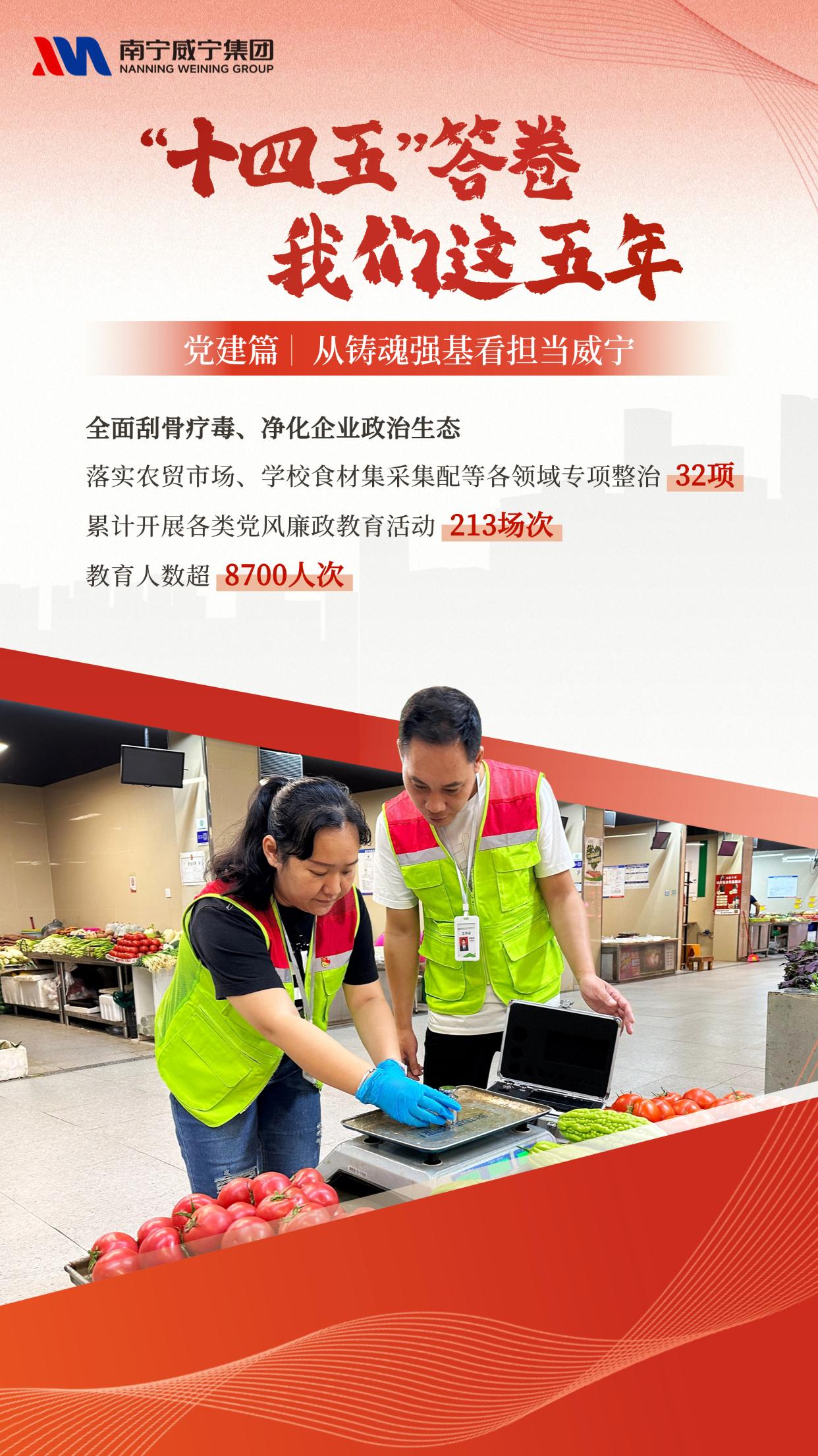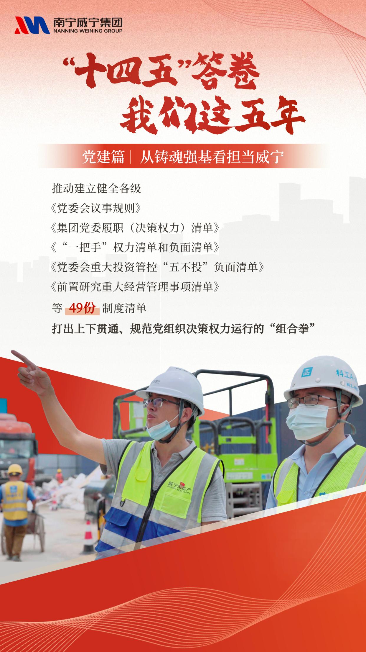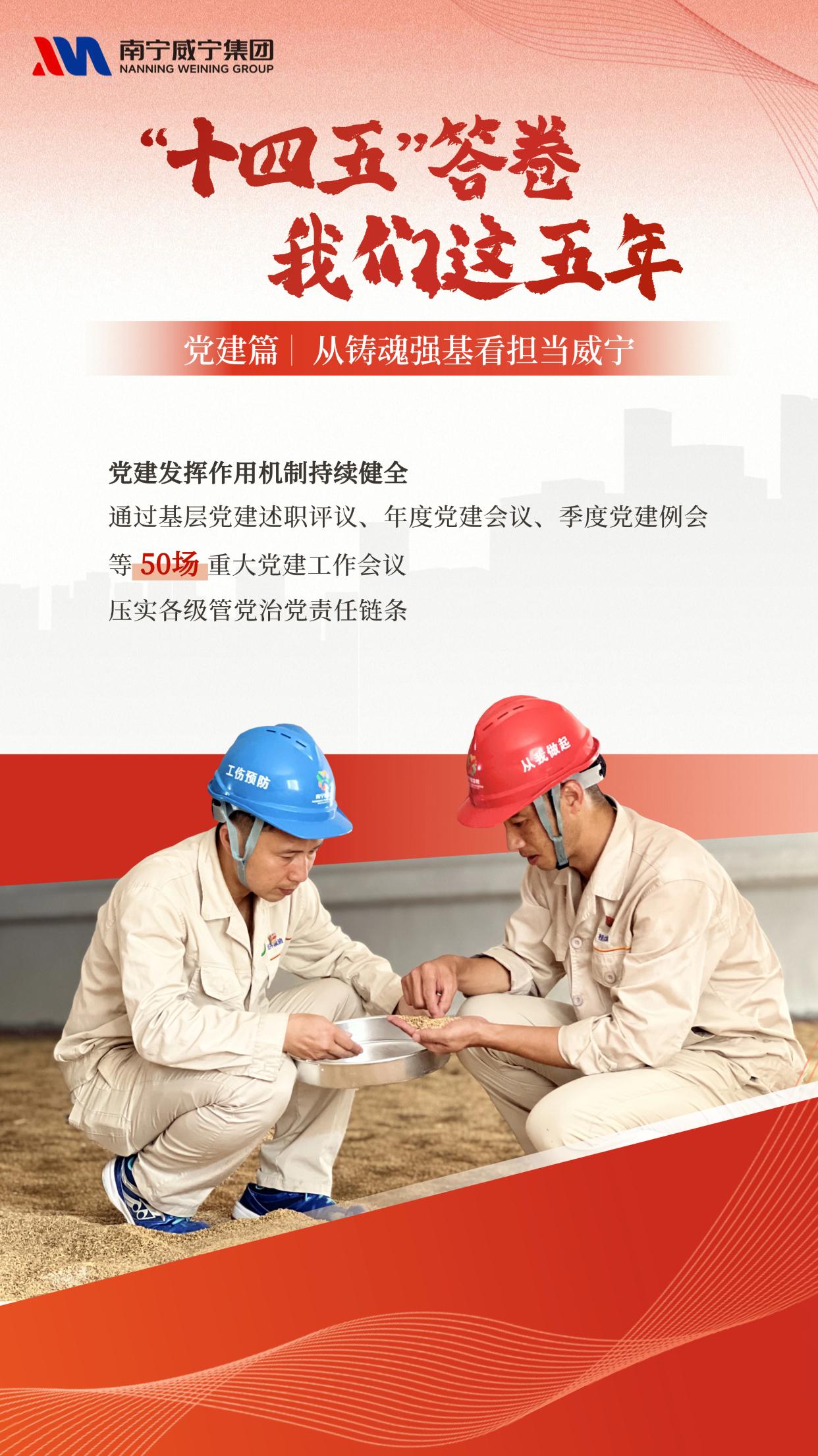 近日,集团微信公众号推出 “‘十四五’答卷 我们这五年” 系列海报,以五个篇章全景呈现威宁“十四五”期间的砥砺历程与发展成就。事业兴衰,关键在党;强企之路,根基在魂。本期我们聚焦“党建篇:从铸魂强基看担当威宁” ,一起回望党建引领下凝聚的磅礴力量。五年来,我们坚持把党的领导融入公司治理各环节,以严密制度体系筑牢决策根基,以前置把关定向保障行稳致远。从“威光”党建品牌矩阵的持续构建,到一批批党员先锋岗、突击队冲锋在前;从扎实深入的系列主题学习教育,到风清气正政治生态的全面重塑——党的建设,始终是推动发展的红色引擎,是攻坚克难的最硬脊梁。