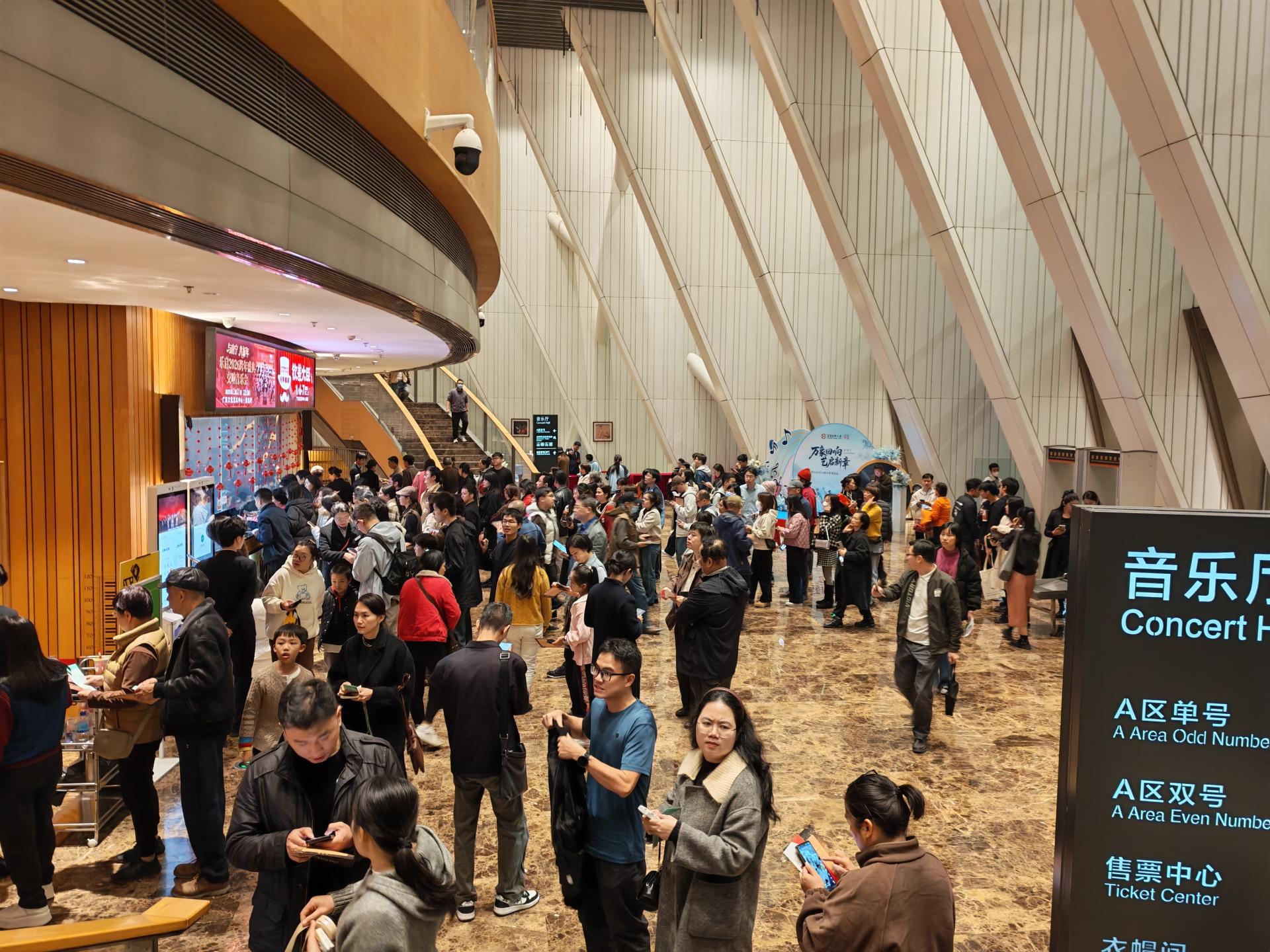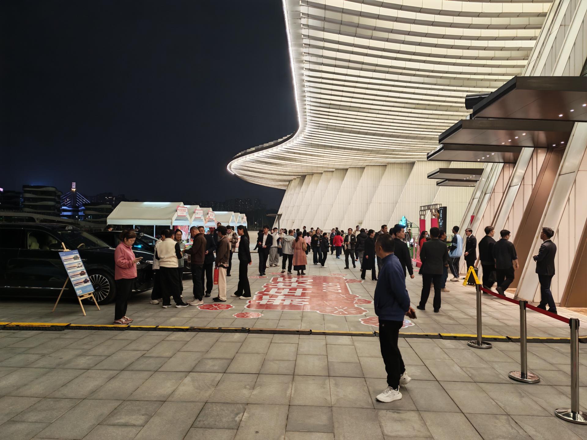 本次跨年盛典在呈现高水平音乐演出的基础上,同步规划了多元化配套服务体系。音乐厅入口区域,跨年主题市集、新春打卡展板与品牌文化宣传展板有机融合、相映成趣,为现场观众营造了沉浸式艺术体验场景;针对VIP 观众,专属休息区同步开放,在悠扬背景音乐的烘托下,五象山庄定制的时令鲜果、精致冷盘及特调饮品供其品鉴,让观众沉浸式感受雅致从容的观演体验;面向二等票观众,简餐区提供舒适休憩空间,五象山庄供应的丰富简餐、特色饮品及精致小食,全面满足观演前后的能量补给与休憩需求。零点钟声临近,千余名观众与乐团指挥共同倒计时,齐声高喊 “新年快乐”,音乐厅内礼花绚烂绽放,将跨年喜庆氛围推向峰值,使本次音乐会成为兼具艺术质感与情感共鸣的年度文化盛事记忆。