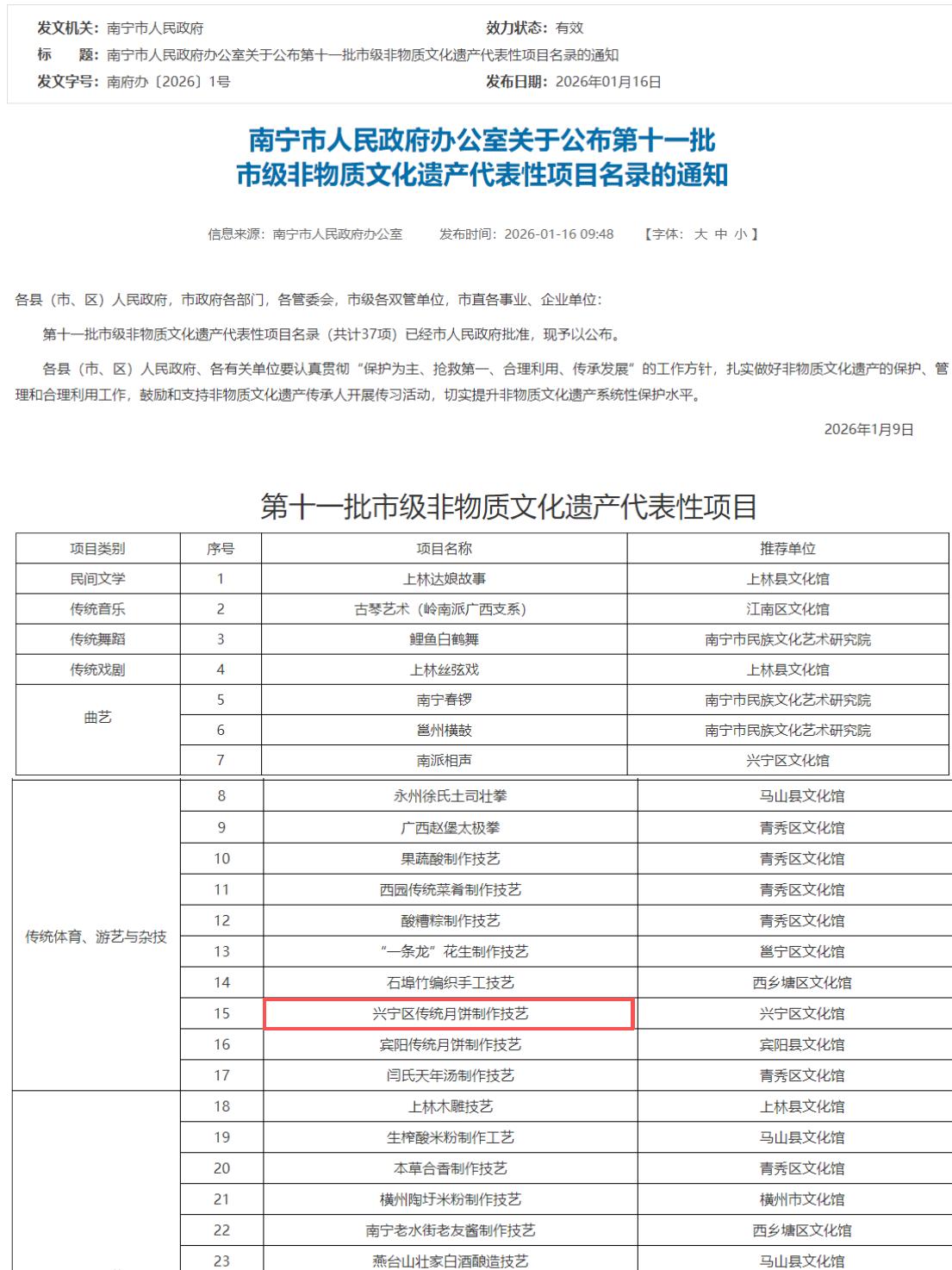匠心永驻,又结新果。近日,南宁市人民政府公布第十一批市级非物质文化遗产代表性项目名录,南宁威宁集团所属企业南宁文旅集团旗下南宁银河有限责任公司(以下简称“银河公司”)申报的“兴宁区传统月饼制作技艺”成功入选。这是继“邕城凉茶制作技艺”之后,银河公司获得的第二项市级非遗认定,标志着企业正式形成“双非遗”文化品牌体系,进一步筑牢了品牌文化根基。