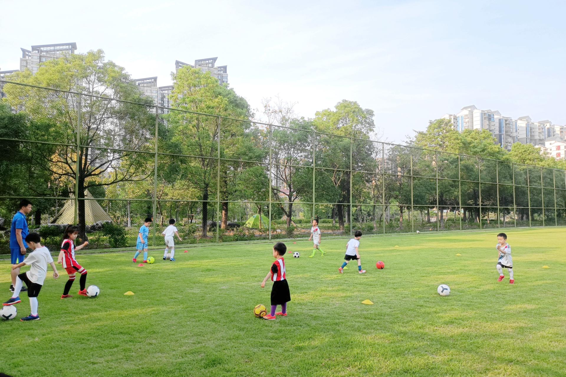 绿草如茵的足球训练场