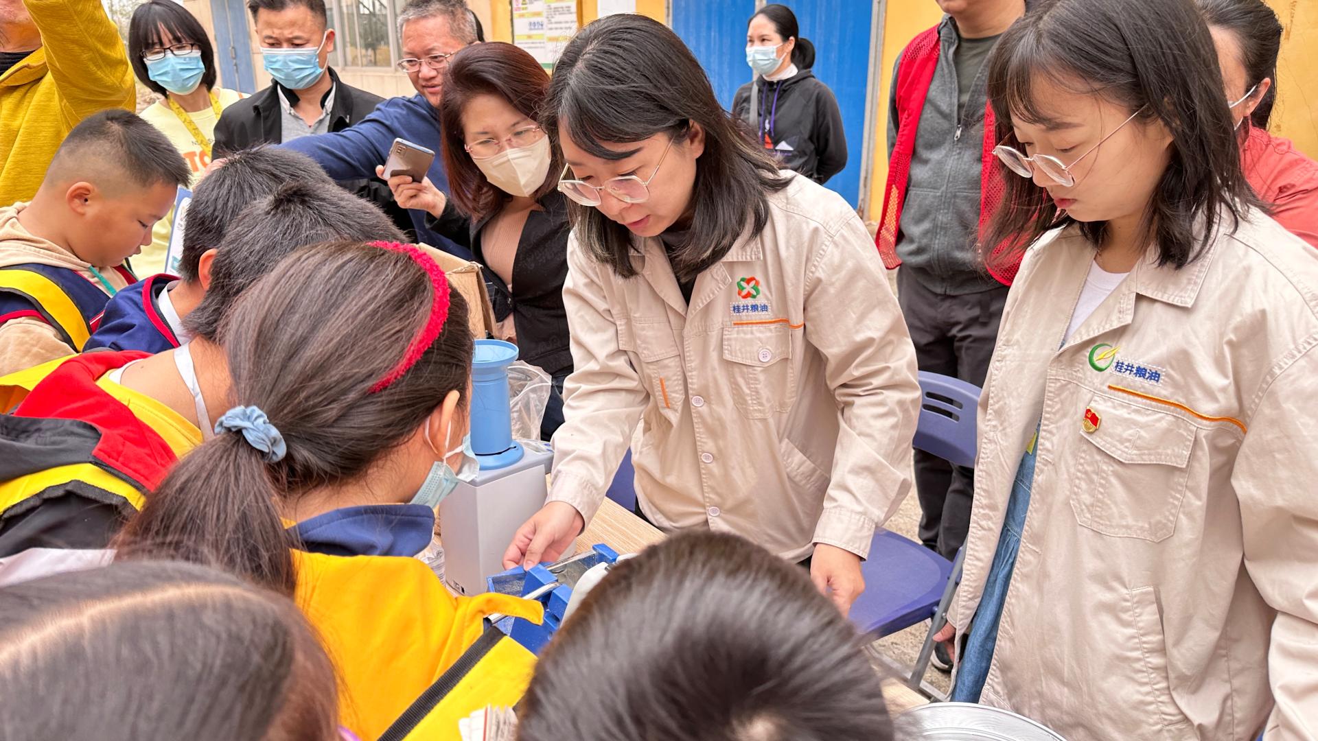 在南宁市储备粮公司五象粮库,小记者们在讲解员的带领下,实地参观了大米加工生产车间,认真了解稻谷脱壳、色选、抛光等生产工艺流程,并学习如何辨别常见的大米品种、米饭赏味等有关知识。同时,小记者们还积极参与实践活动,动手操作米筛挑选优质米粒,更直观地了解杂质、不完善粒等粮食指标的具体表现,切身感受“放心粮油”产品的高标准质量和“粒粒皆辛苦”的爱粮精神。