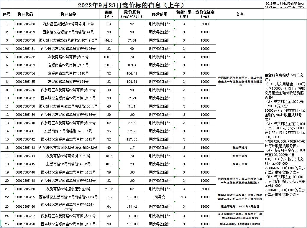 威宁资产公司2022年9月28日公开竞价标的信息
