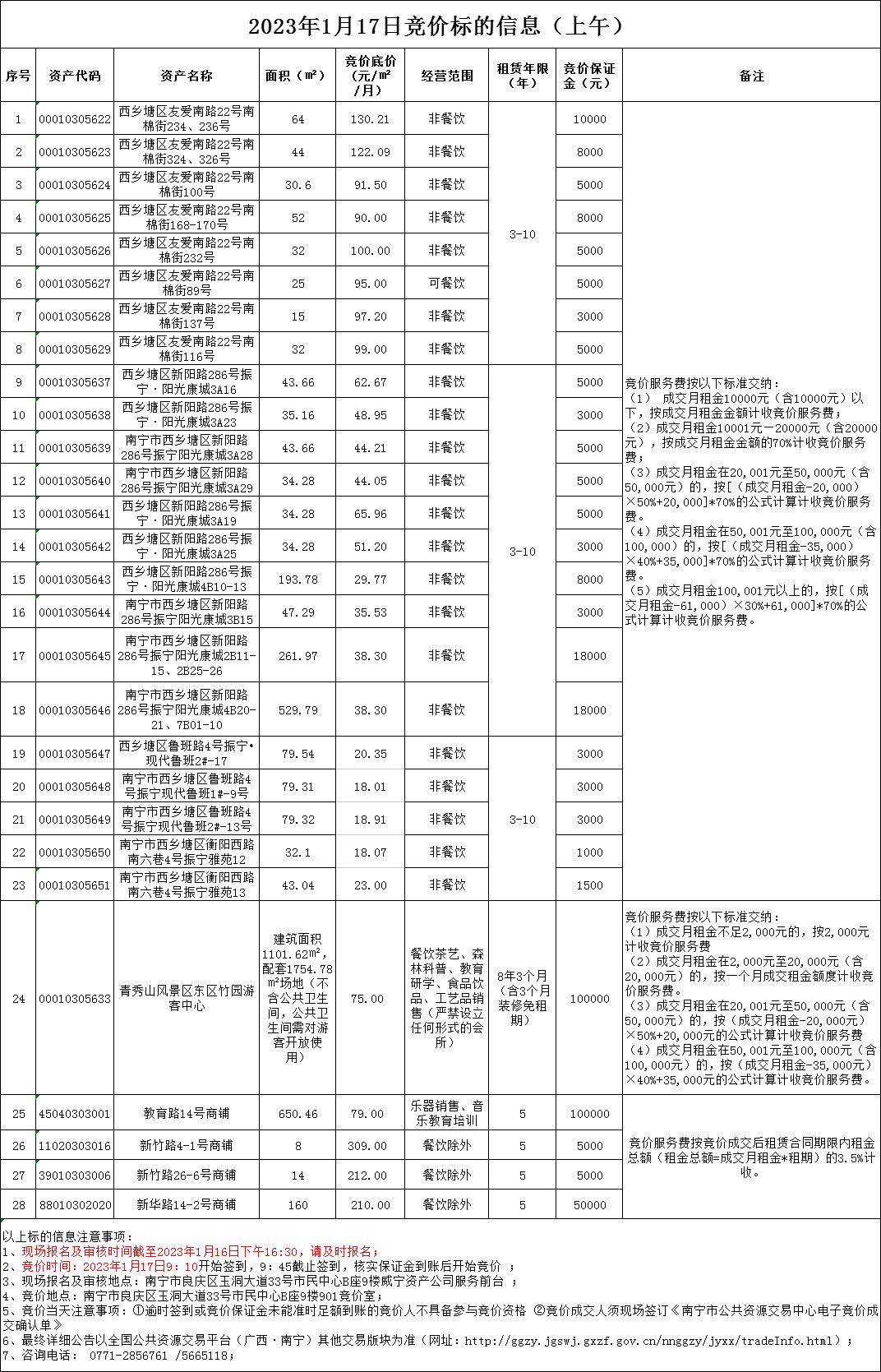 2023年1月17日竞价标的信息