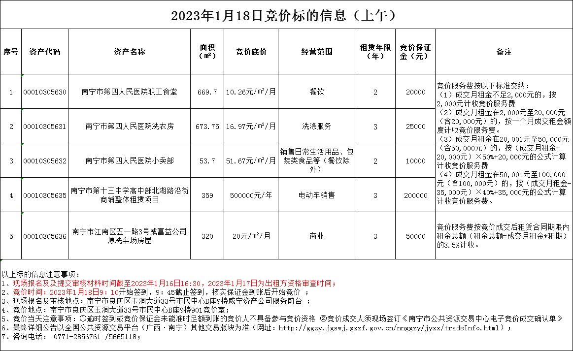 2023年1月18日竞价标的信息