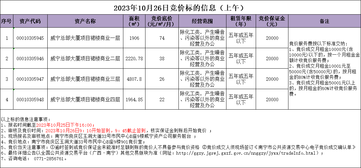 2023年10月26日竞价标的信息