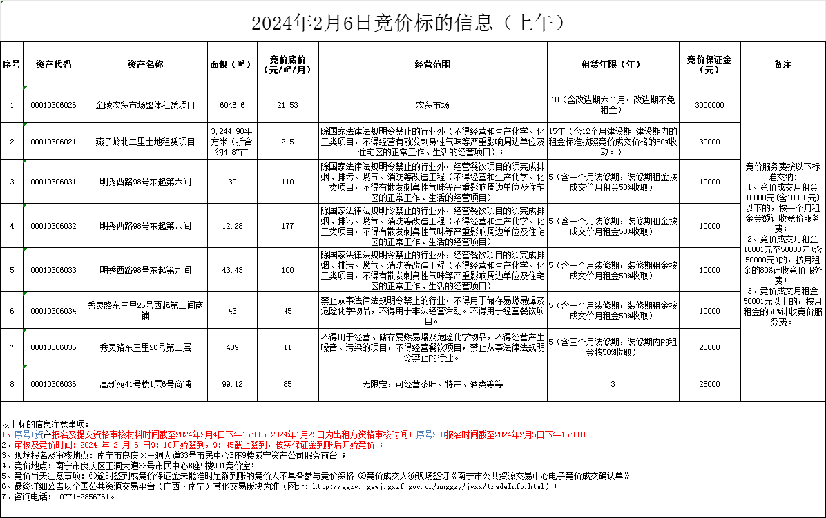 2024年2月6日竞价标的信息